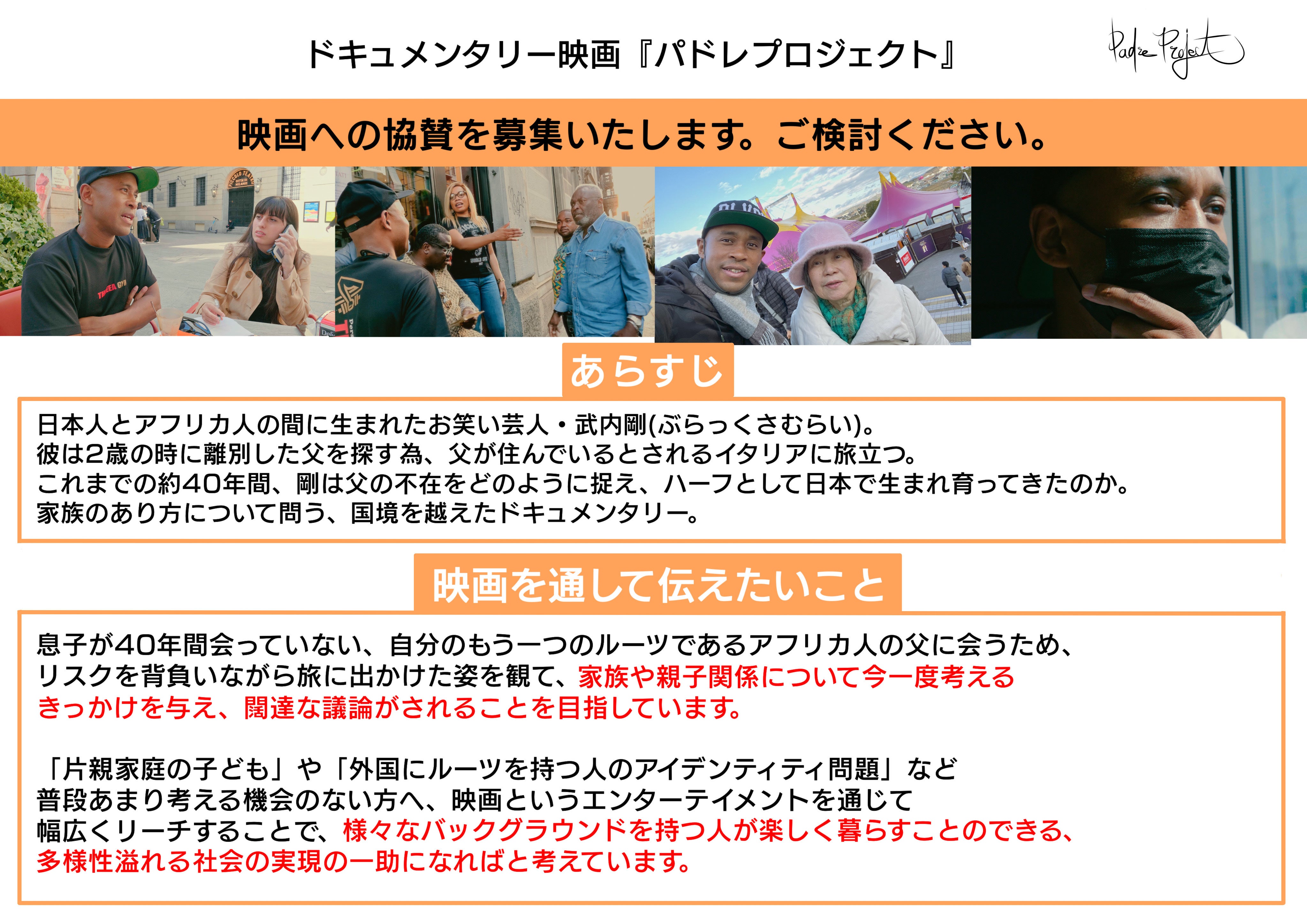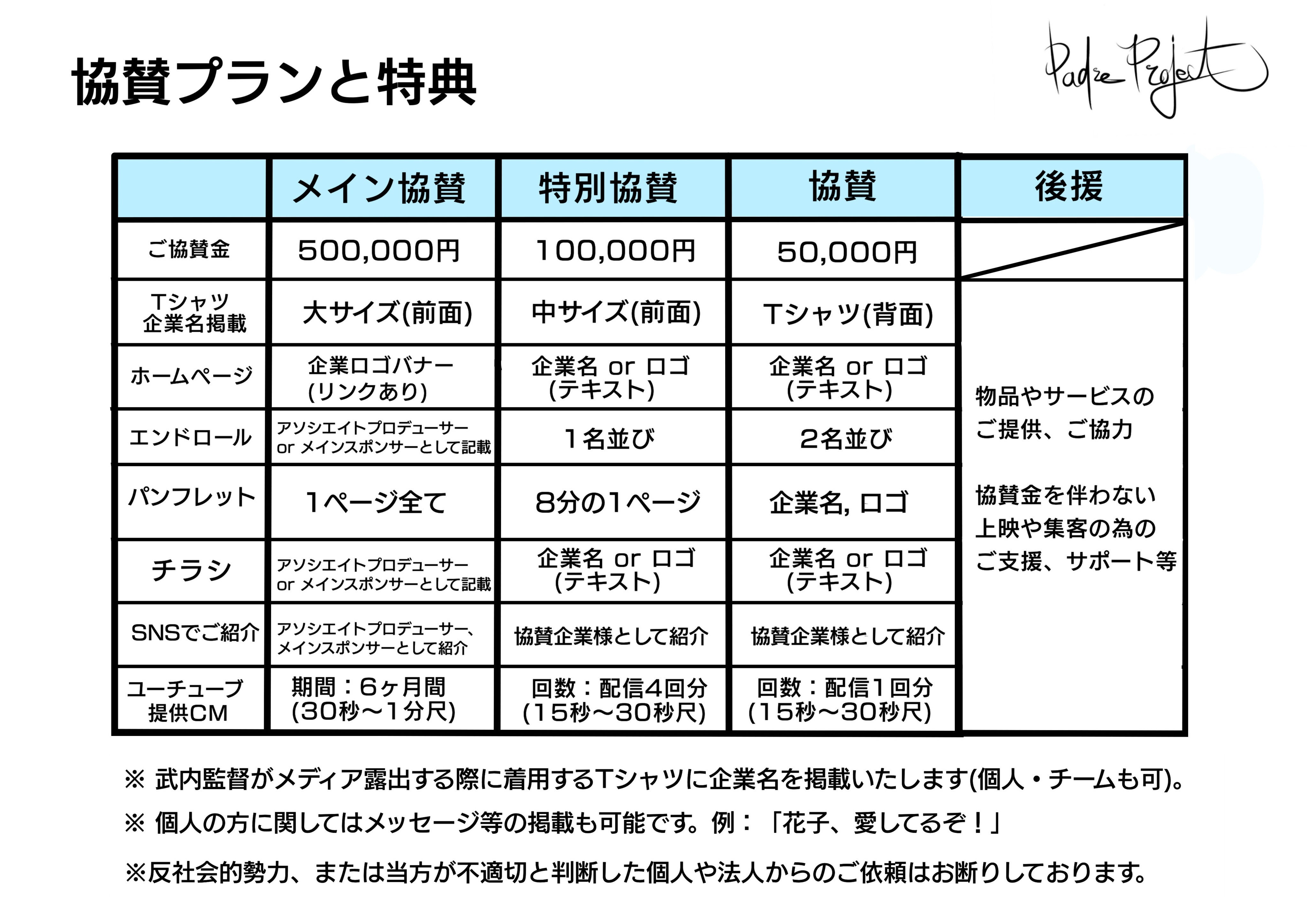 本映画を応援して頂くことで、御社のやっている活動の周知にもつながりますし、企業価値が巡りめぐって高まることになります。