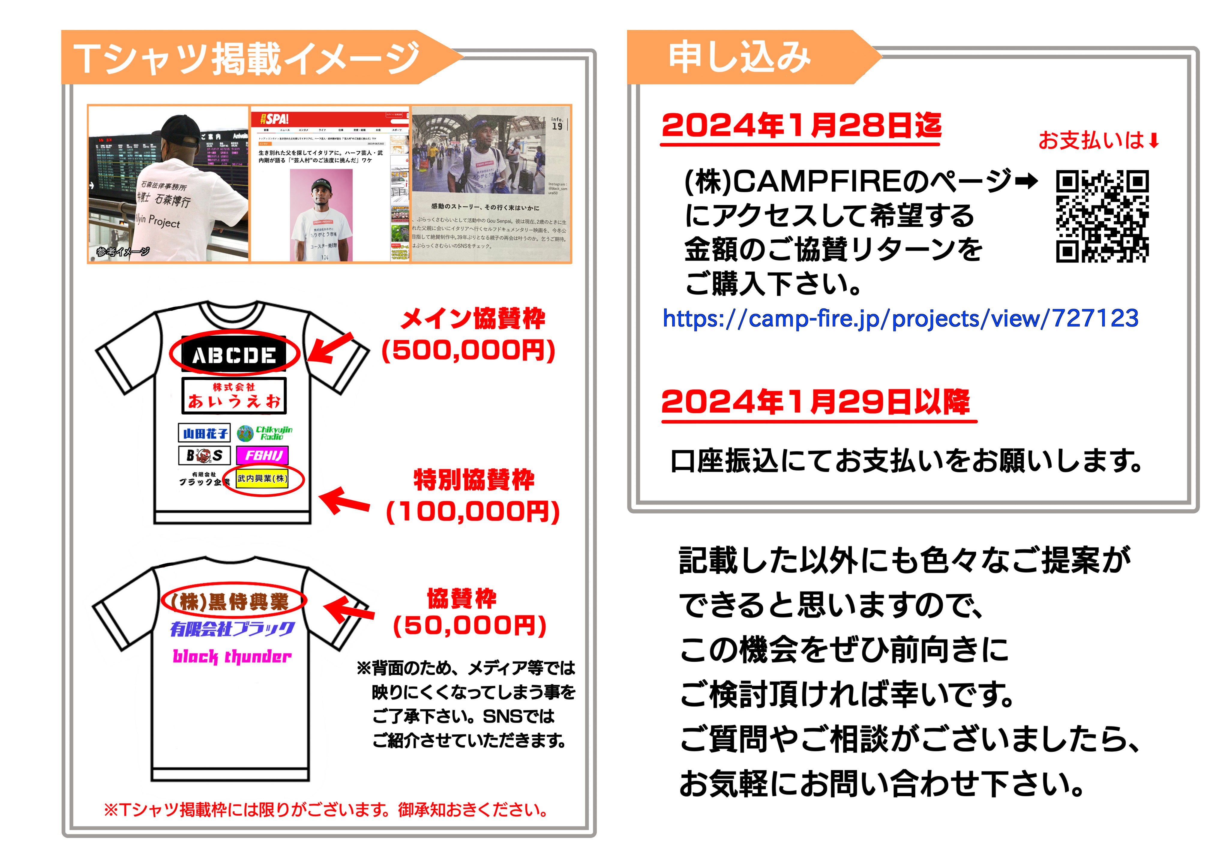 そして、本日から本格的にご協賛(Tシャツスポンサー権)の営業を始めます!
