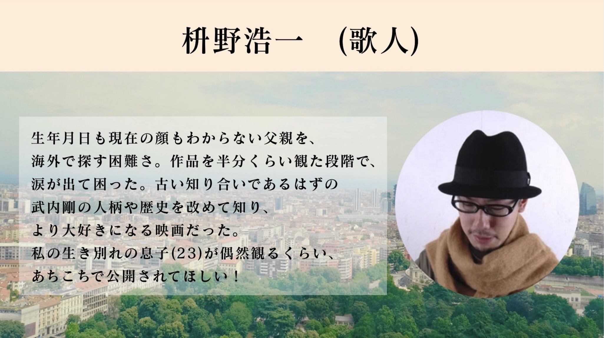 本日は、なんと!高校国語教科書(明治書院・大修館書店)に短歌が掲載されている、著名な歌人、枡野浩一さんから 映画への応援コメントを頂きましたのでご紹介させて頂きます。