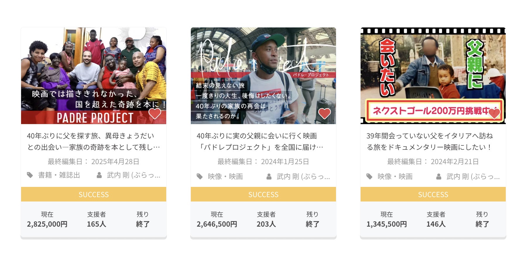 皆さま、こんにちは。『40年ぶりに実の父親に会いに行く映画『パドレ・プロジェクト』を全国に届けたい!』プロジェクトオーナーの武内剛(ぶらっくさむらい) です。
