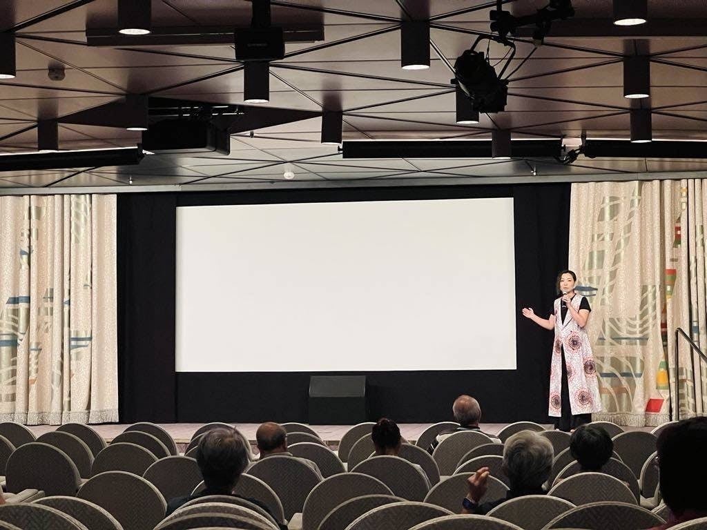 知る人ぞ知る、あの豪華客船 飛鳥2の船上でパドレの上映が行われました。