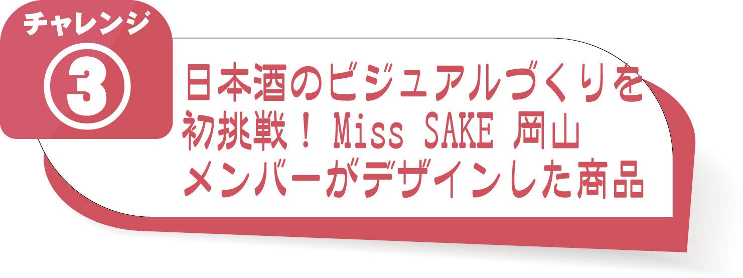 本企画では、日本酒が大好きな方、今まで日本酒にあまりなじみのなかった方皆様に楽しんで頂けるよう、お酒の企画から酒造り、販売までを「Miss SAKE 岡山」メンバーにて取り組みました。
