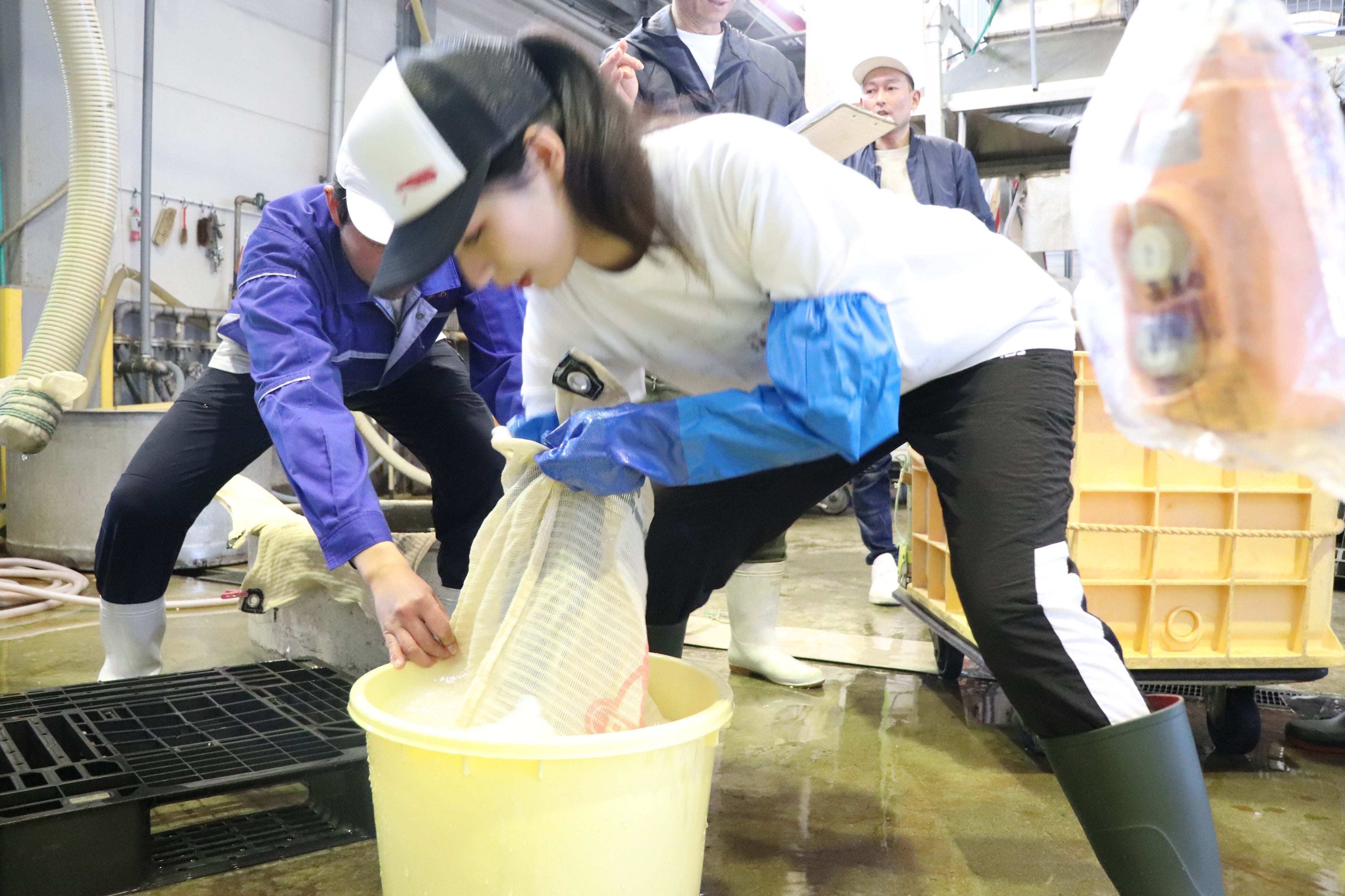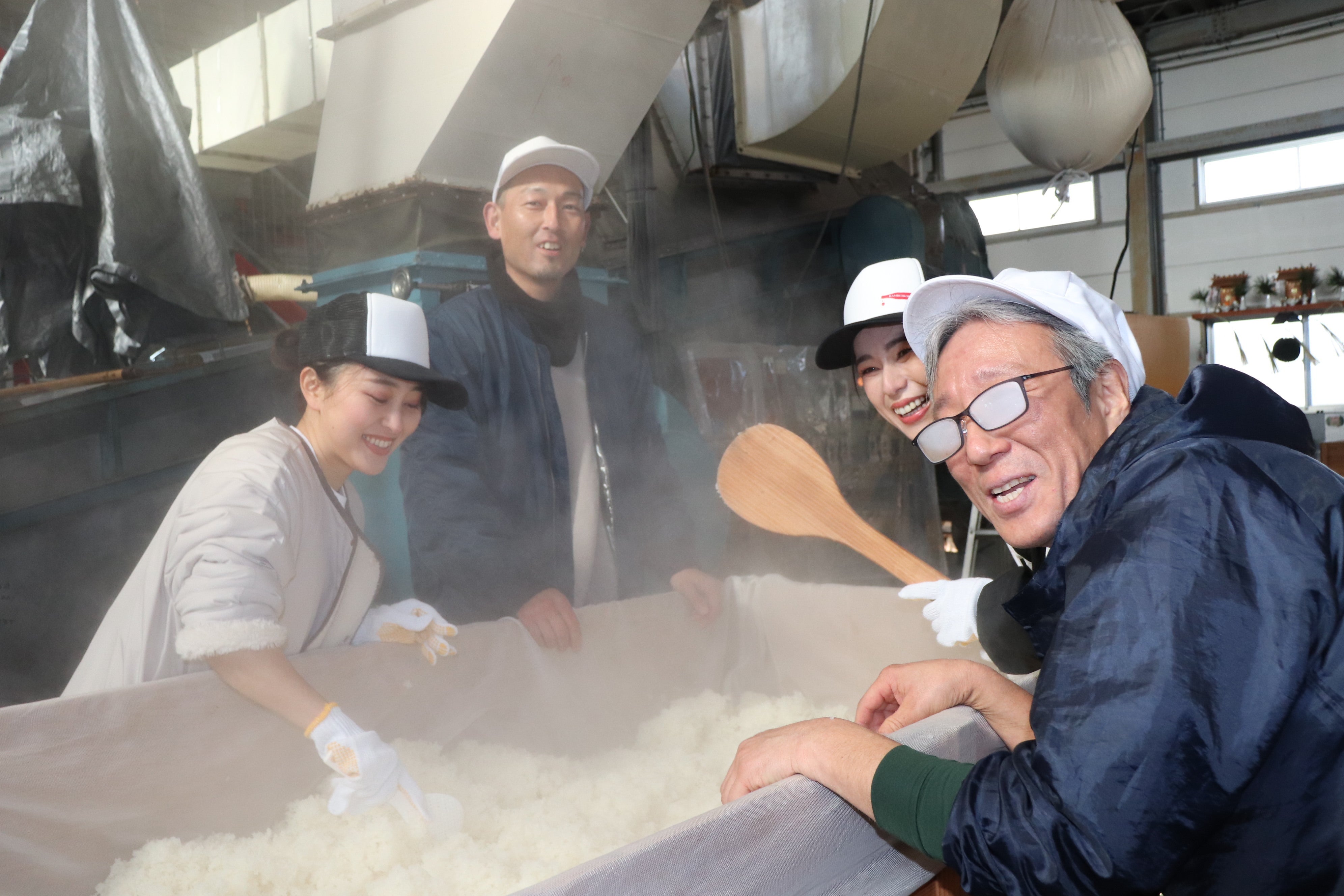 日頃、男だらけの中で仕込みを行っている杜氏も眼鏡が曇るほどニッコリ。