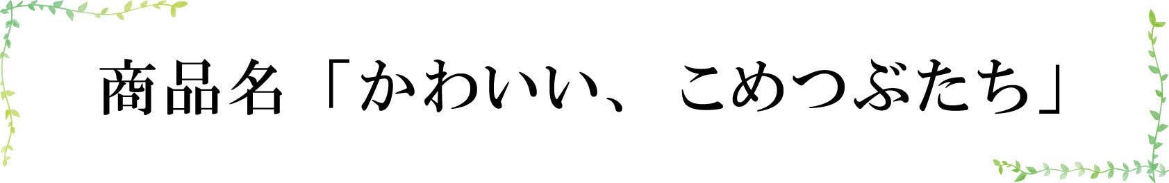 名前のきっかけは初めての仕込みが終わった後のメンバーとの何気ない会話。「おこめ、可愛かったね。」「この可愛いおこめ達が本当にお酒になるんだね。」このお酒を造る体験をしたMissSAKE岡山のメンバーがおこめ一粒一粒を大事に仕込んだ想いを酒名にしました。