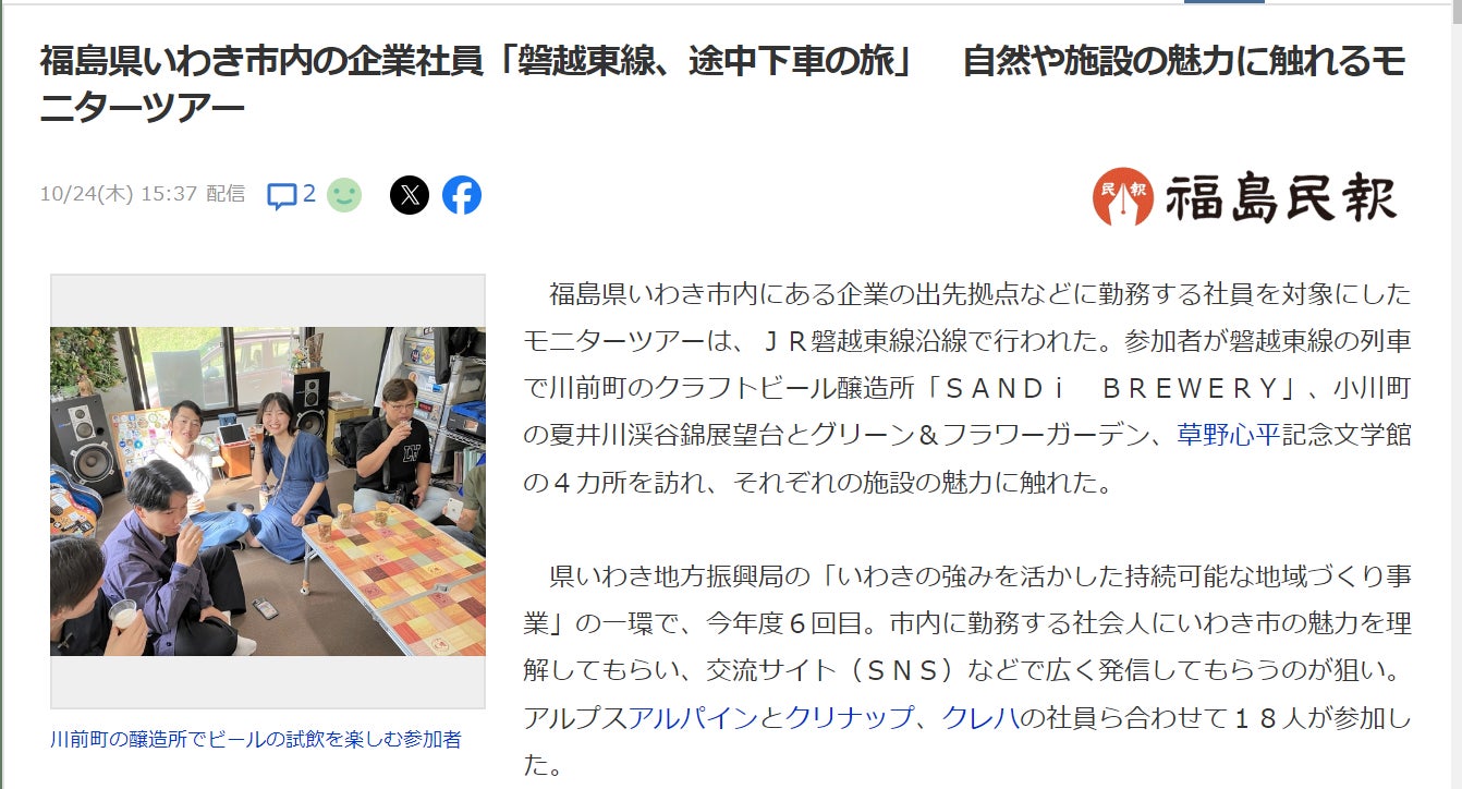 先日、「磐越東線、途中下車の旅」 自然や施設の魅力に触れるモニターツアーにて、たくさんの方が見学にお越しくださいました!