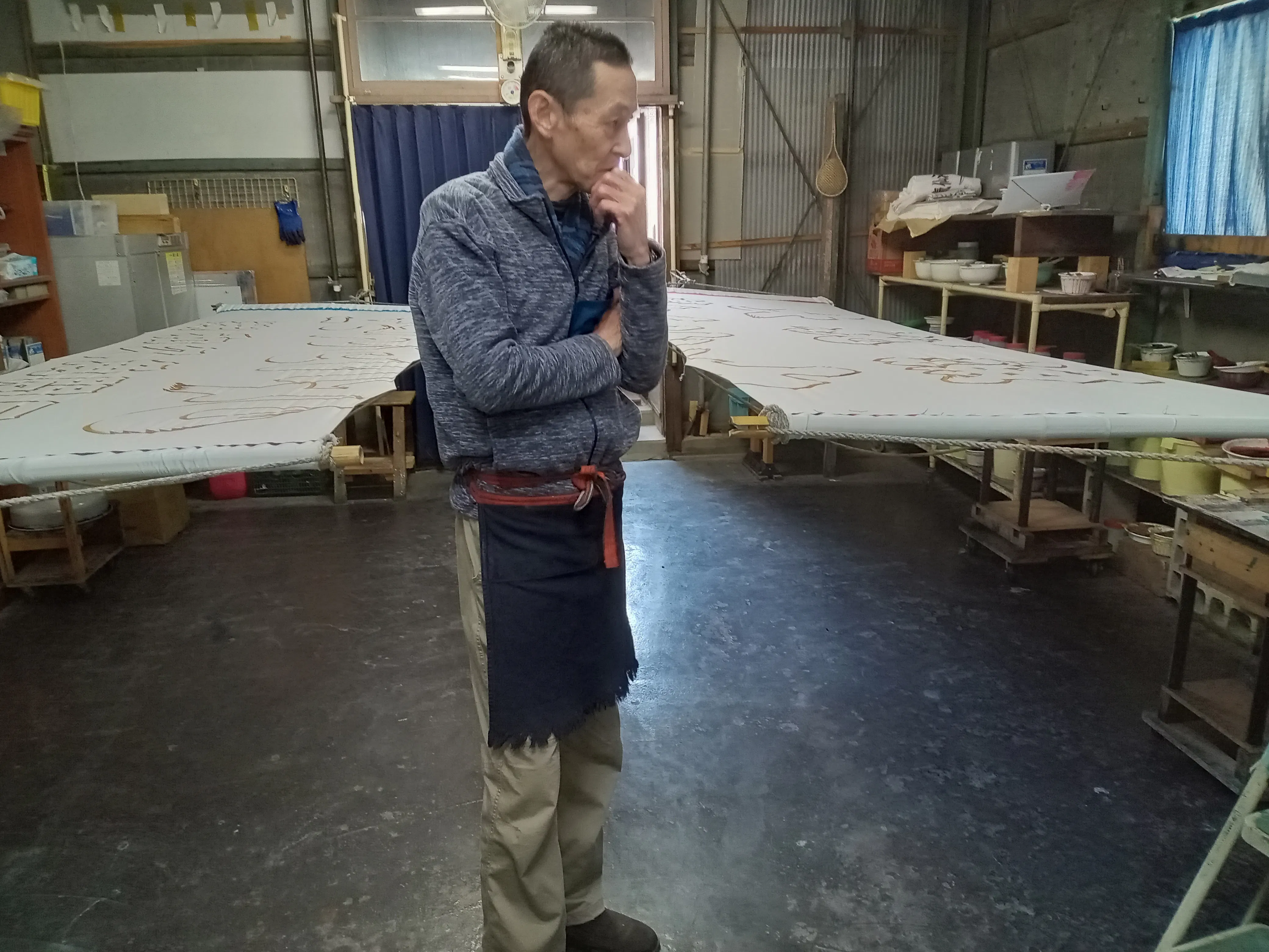 それに伴い大漁旗の仕事も減っていきました。近年は大漁旗のコストをさげるために機械印刷で済ませる漁師さんもいらっしゃるようです。現在は気仙沼でも大漁旗を創る職人はただ一人。宮城県内でもほとんどその職にとどまっている人がいません。