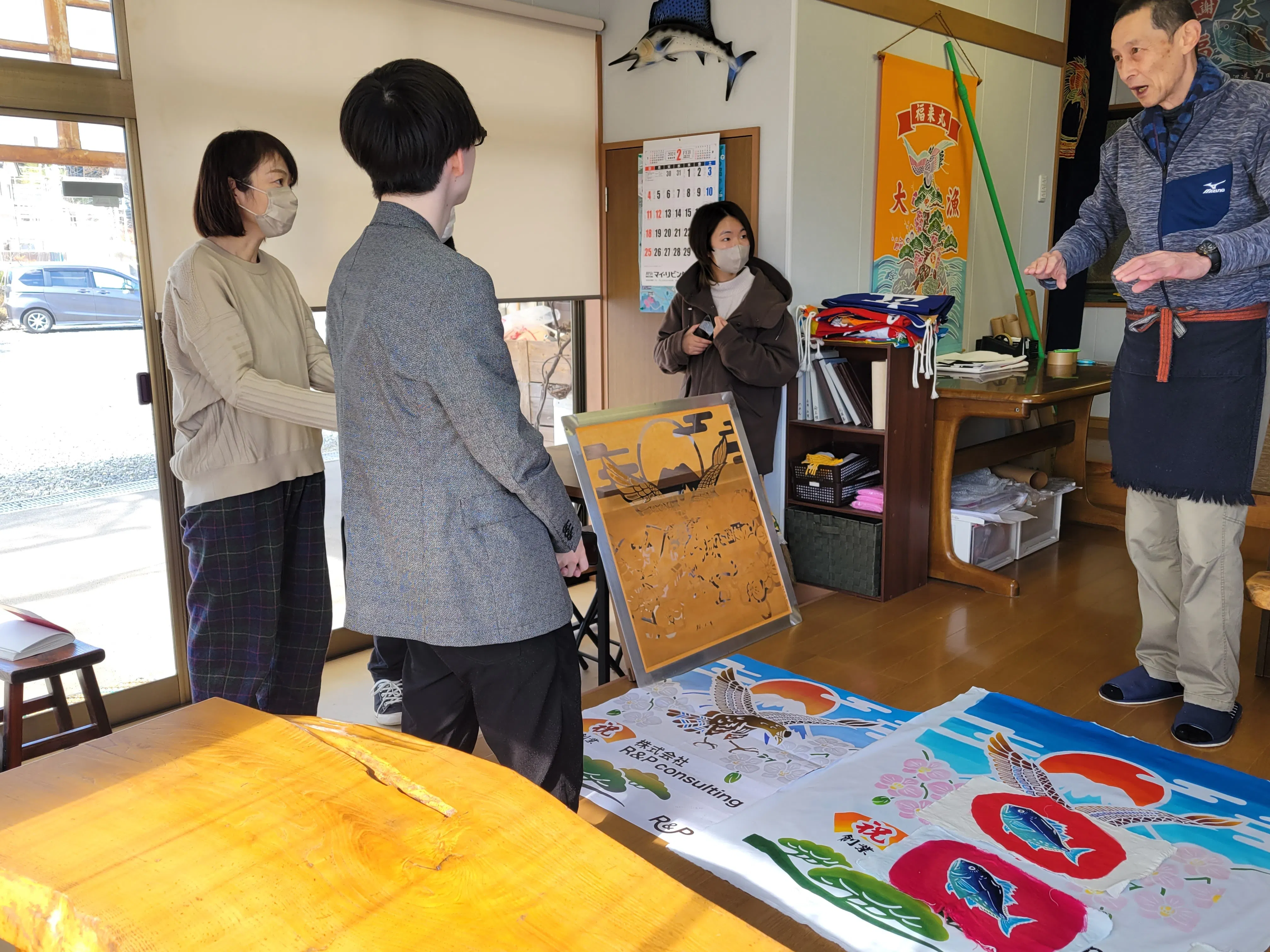 私たちは有志メンバーを集めてテスト試作を繰り返しながら活動を始めております。大漁旗の職人と協力し、伝統産業の技術と想いを引き継ぎながら、新しいデザインを取り入れることで、伝統産業の新たな価値を創出していくためにどんなことができるか?話し合いを進めております。また、現地のデザイナーとの共同作業も進めており、地域デザイナーの感性とデザインを融合させ、広く新商品を開発するために準備を進めています。