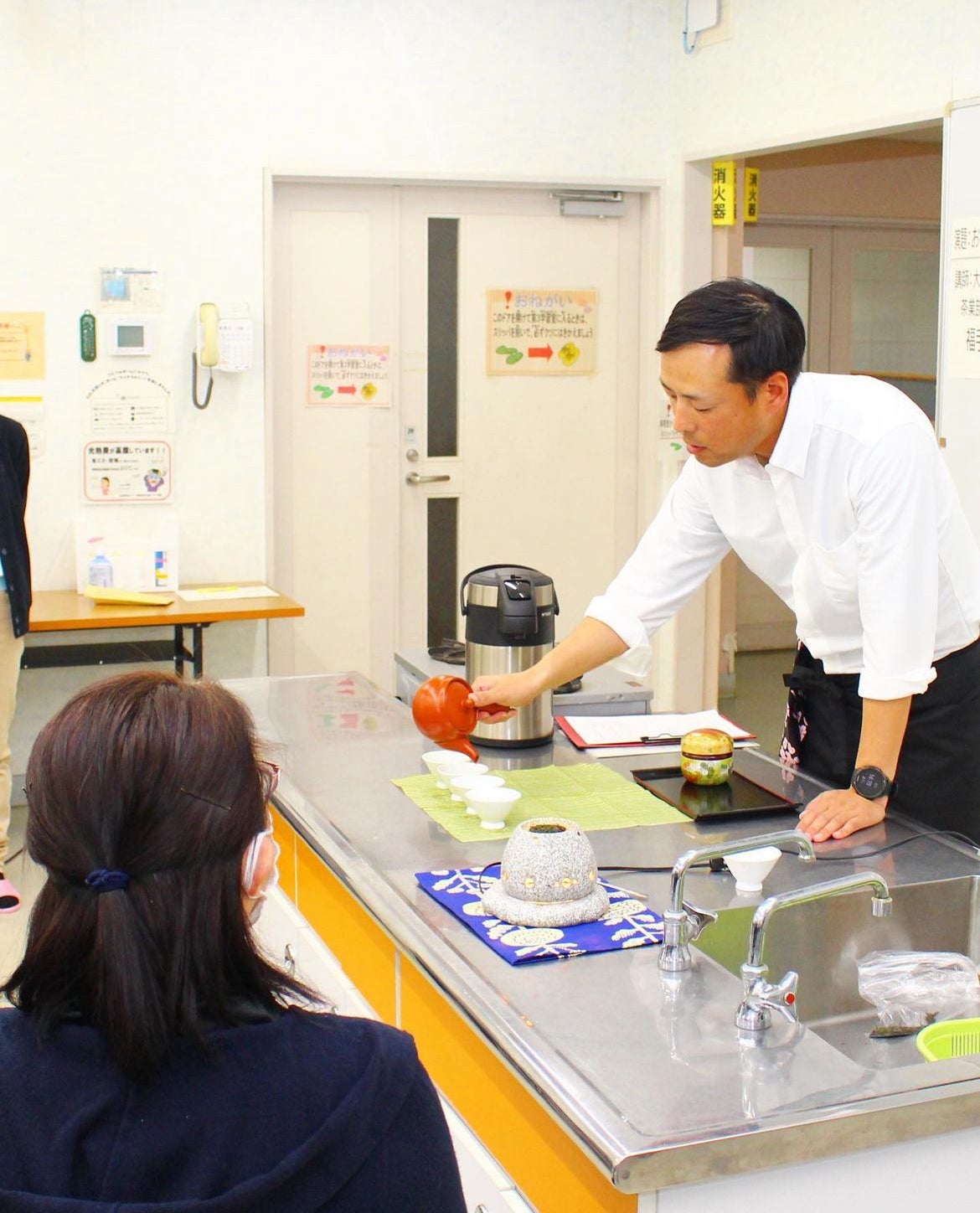 お写真もアップしておりますが、JAおおいがわ茶業部の福手(ふくて)さんです!JA(農協)のお仕事のかたわら、地域の小学校やお寺、研修会等でのお茶育活動をされております。今回の私たちのプロジェクトにも共感してくださり、子供たちにプレゼントする急須を贈呈頂いております。