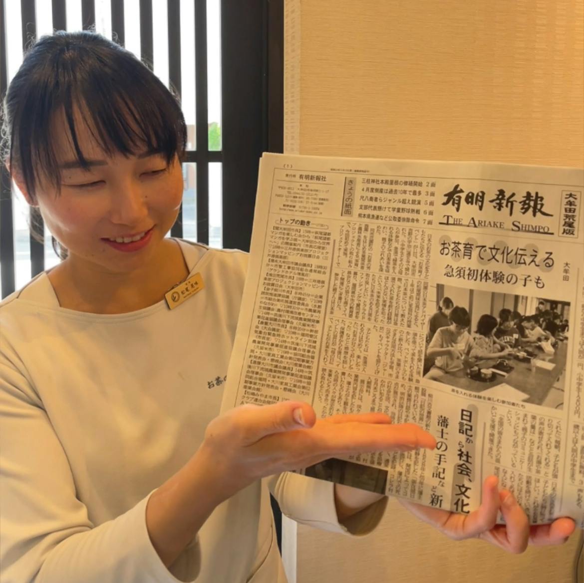 本日5月17日(金)付の地元紙、有明新報の第1面トップページに先週のお茶育イベントの記事を大きく掲載頂いております!お茶育活動を続けてきての1つの成果として、お陰様で私としても大変嬉しく思います。