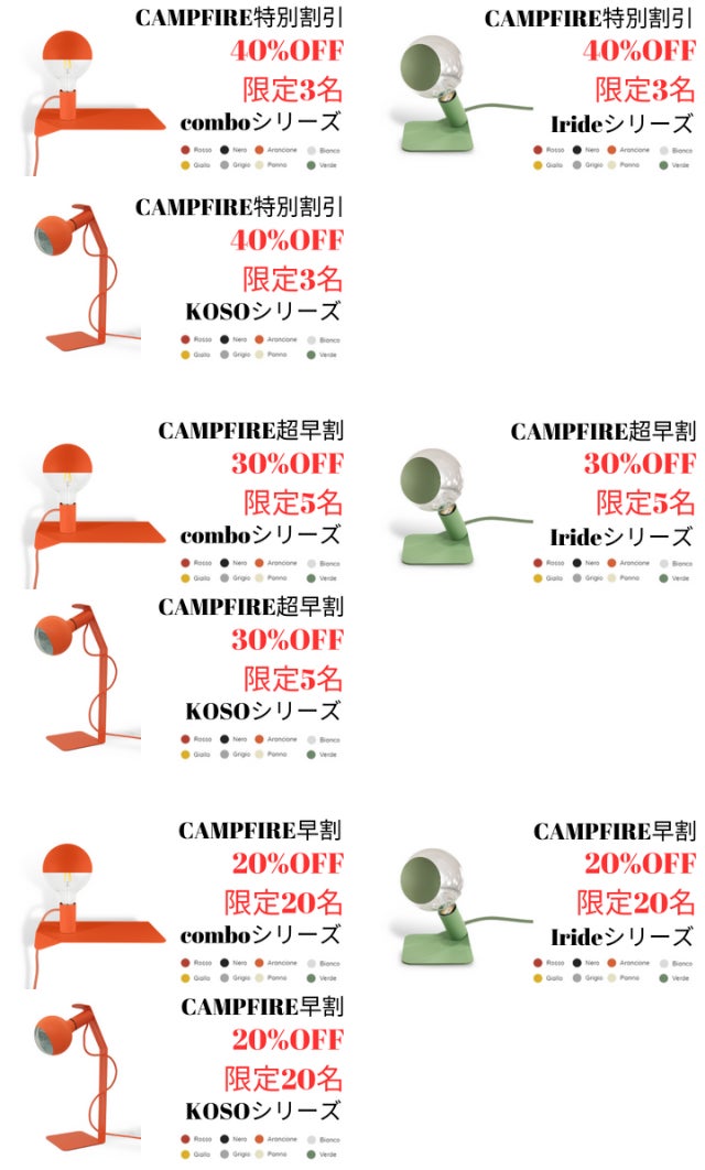 イタリア製デザインのインテリアランプを日本の多くの方たちに見てもらい、そしてたくさんの方たちに販売できたらと思い、CAMPFIREにて先行販売を行います。