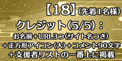 まず、下図の先着1名様のリターンはすぐに完売いたしました。スタートダッシュでプロジェクトに勢いをつけてくださり、深く御礼申し上げます。