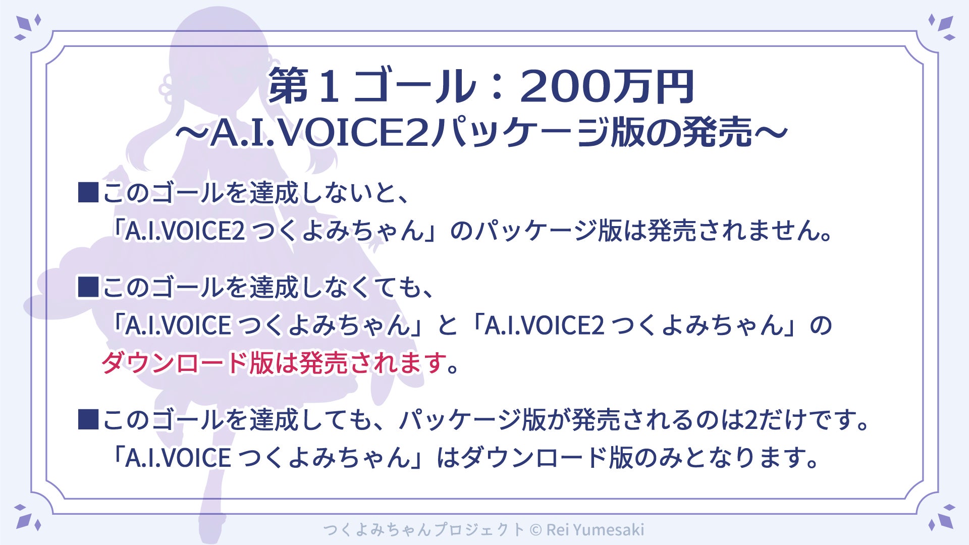 これで、「A.I.VOICE2 つくよみちゃん」のパッケージ版の発売が決定しました。つくよみちゃんが物理的に出荷されることを願ってくださった皆様のおかげです。ありがとうございます!