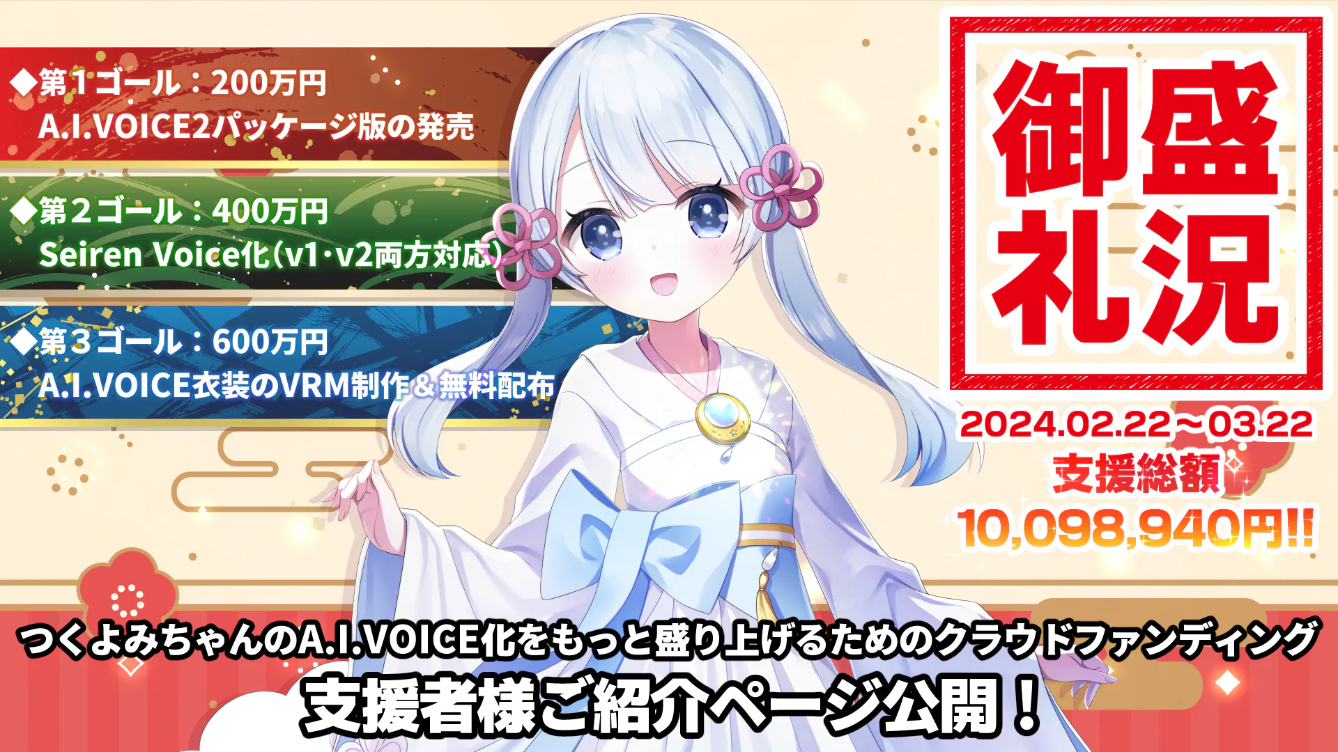 「つくよみちゃんのA.I.VOICE化をもっと盛り上げるためのクラウドファンディング」を応援していただきまして誠にありがとうございます!