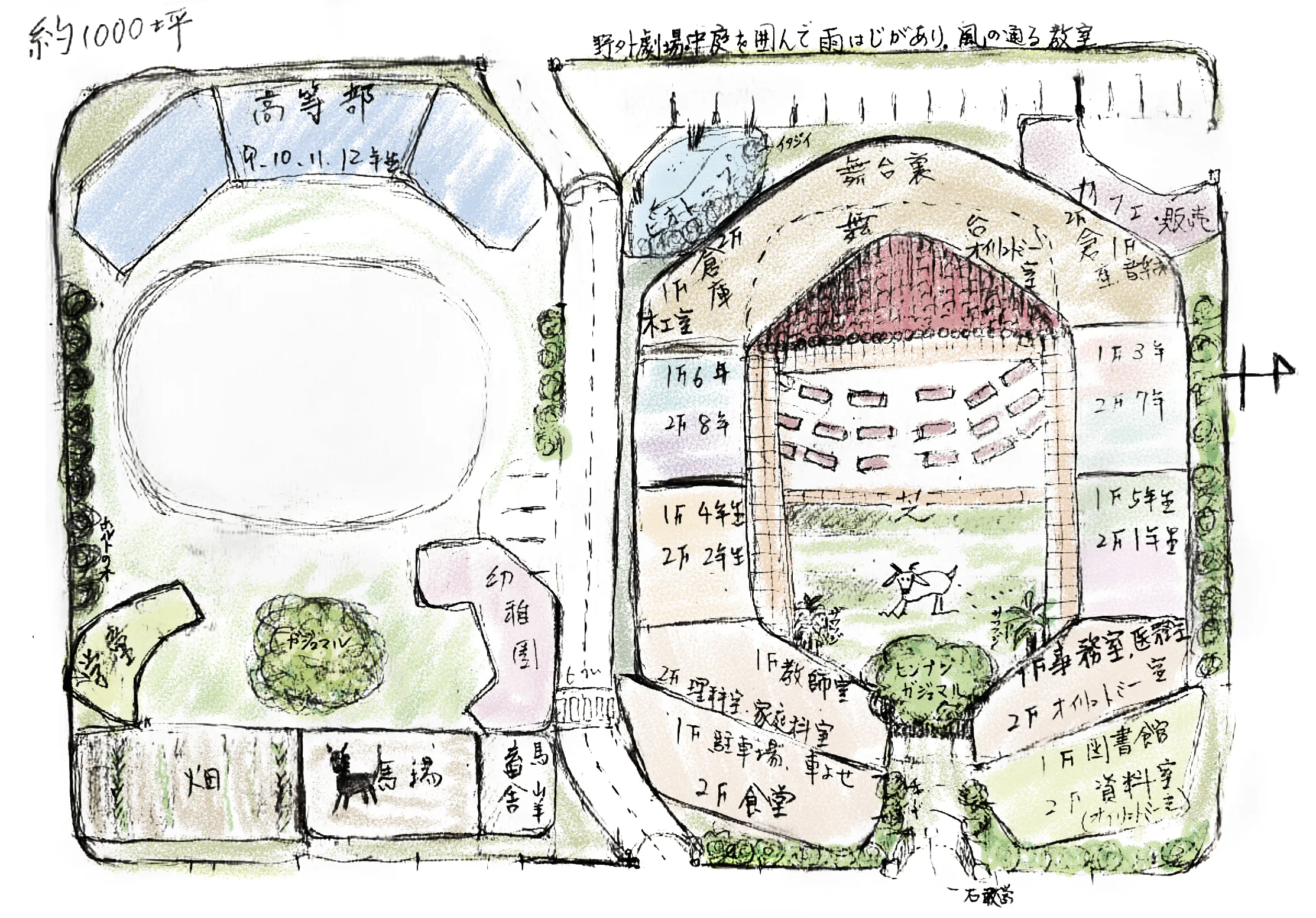 シュタイナー建築という建築技法による温かで創造性のある校舎をいずれは獲得したいと願っています。沖縄の自然に抱かれた美しい校舎建築で、よりよい教育環境を目指します。