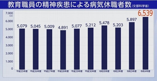 精神疾患で休職した公立学校の教員も、2022年度には、初めて6000人を上回り過去最多となりました。