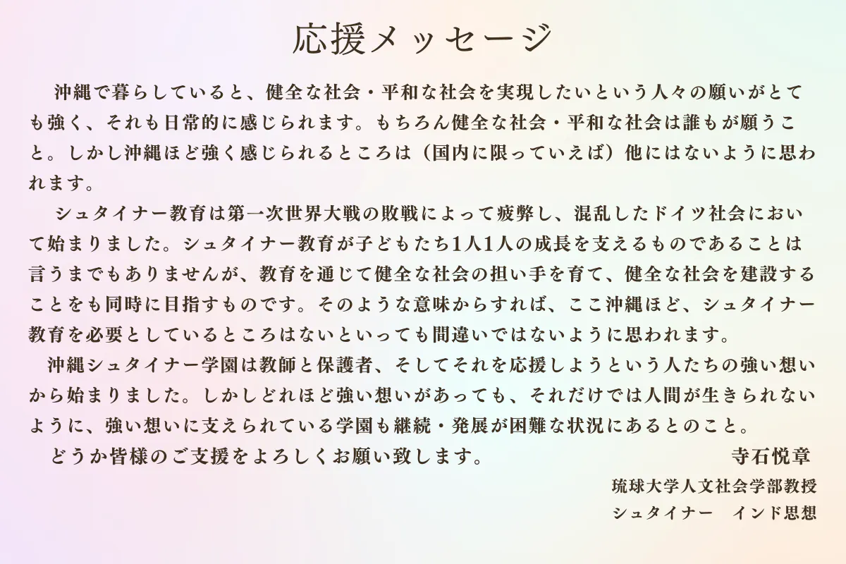 沖縄シュタイナー学園の運営は、それに寄与することができると考えています。