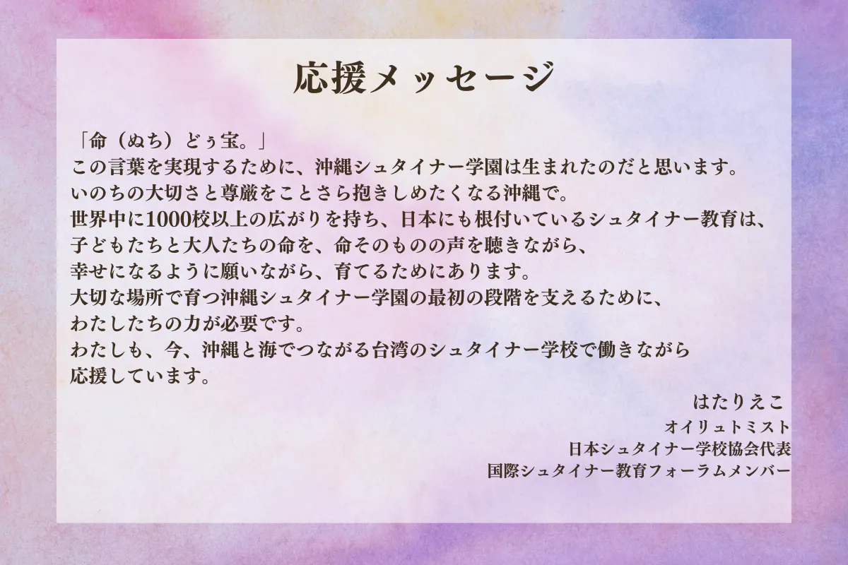 横浜シュタイナー学園、愛知シュタイナー学園で経験のある黒沼亜矢先生が沖縄に来てくださることになりました。
