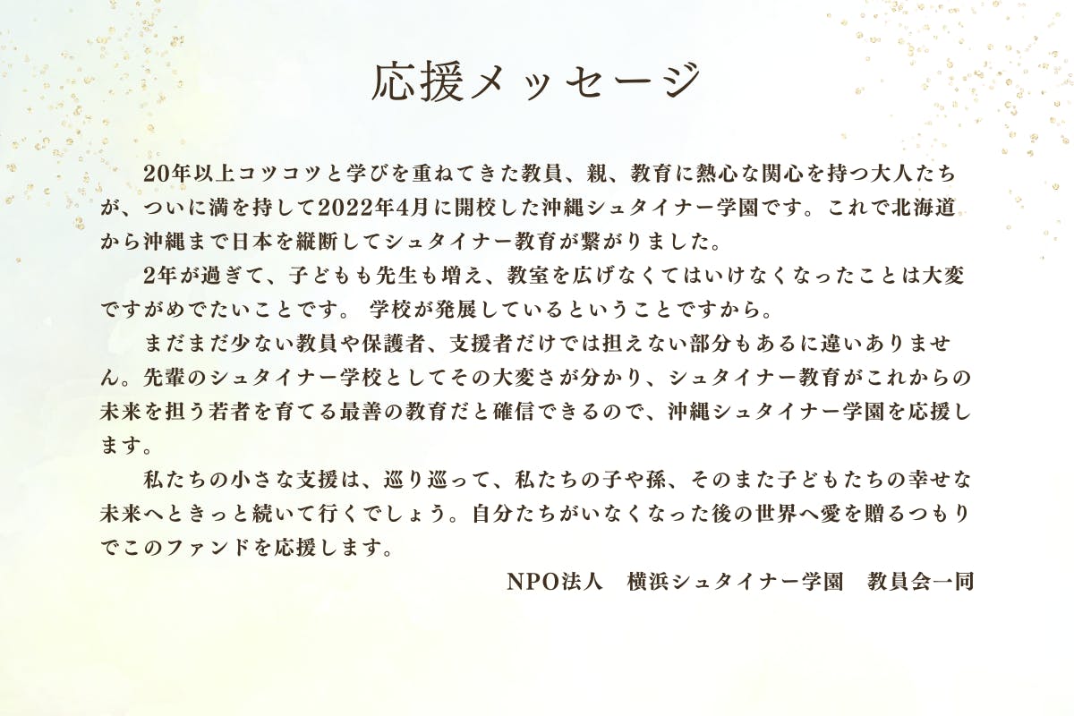 横浜シュタイナー学園教員会の皆様より、応援メッセージが届きました。