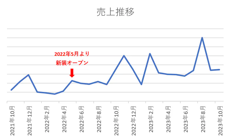 ※お客様より、貴重な情報をご提供いただきました。2022年5月のオープン後、レンタルスペースのため季節や時期により上下はありますが、順調に売上を伸ばされている様子がわかります。