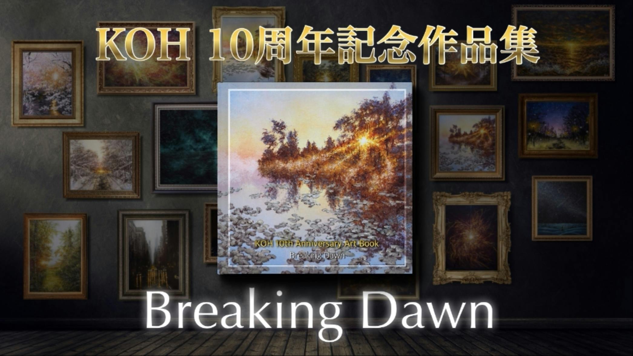 Breaking Dawnは夜明けの光をテーマにしたシリーズで、弾いて飛ばした絵の具で光を表現するKOH独特の描き方を用いて描いている作品が多く収録されています。