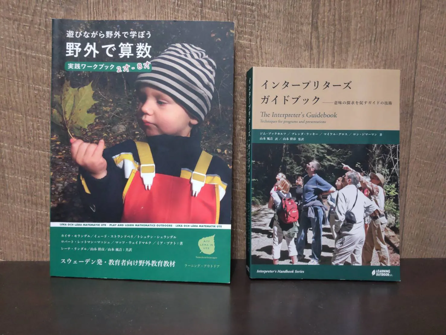 「野外で算数」・「インタープリーズ・ガイドブック」のテキストを使い、