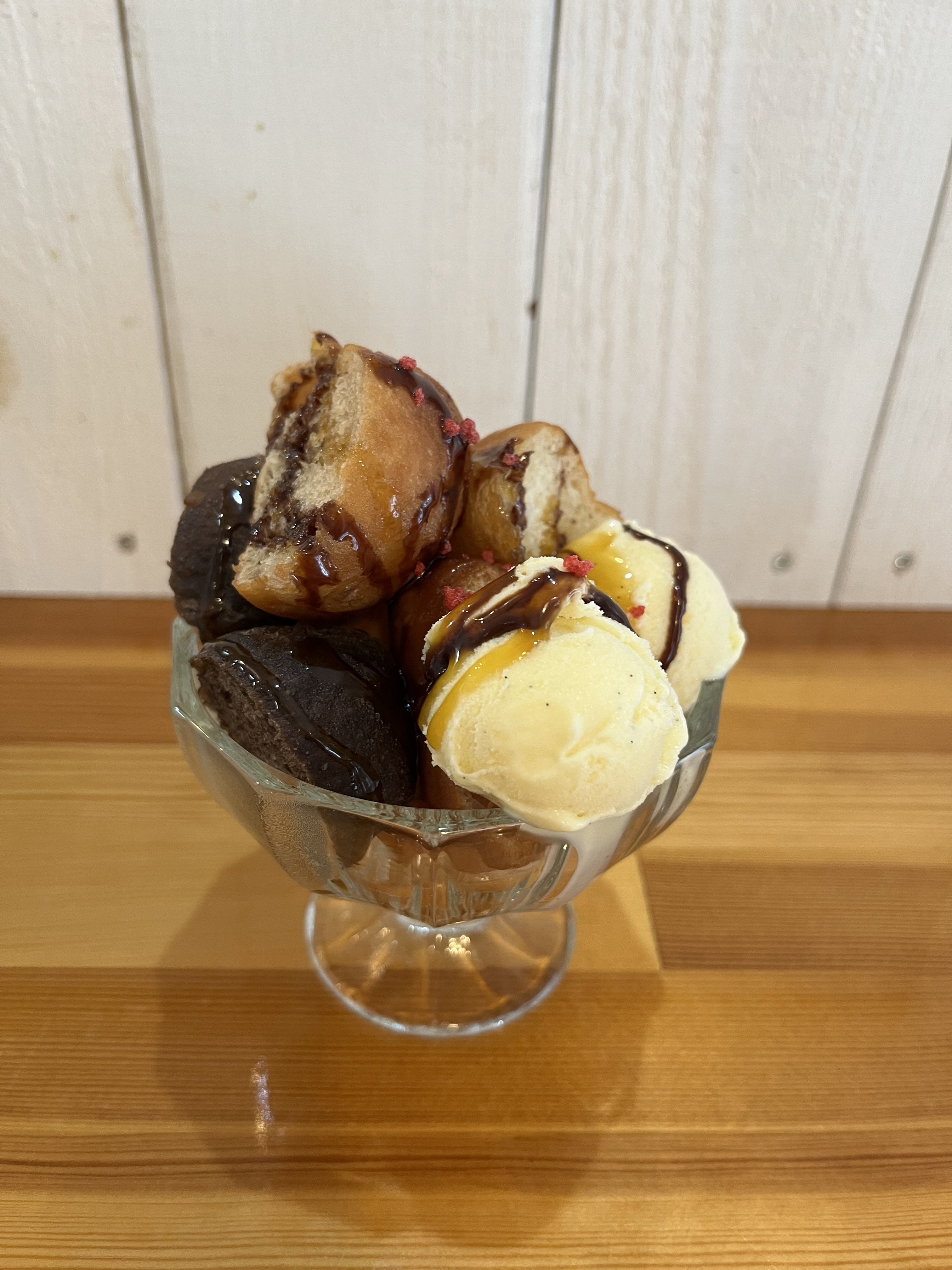 ↑リベイクしてできたての食感のマラサダをサンデーに!