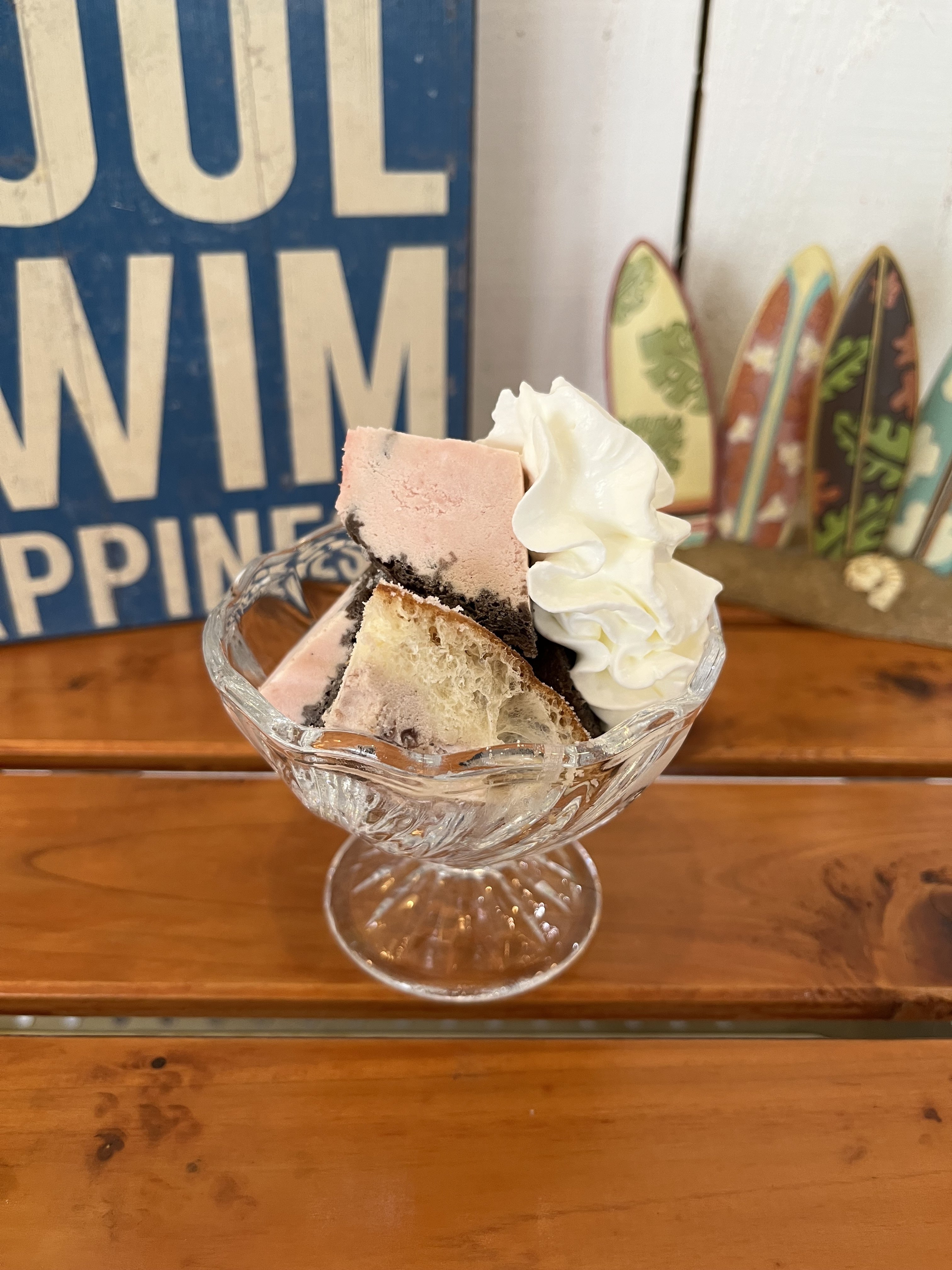 ↑冷凍のままカットし、マラサダアイスパフェに!