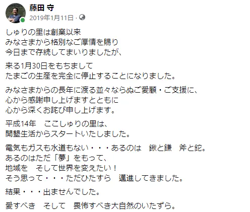 2026/03/30 04:21すべてを失った頑固者が気づいた、「しゅりの森」に込める覚悟と感謝みなさん、おはようございます!あたらしい農場の名前を公募し、みなさんと一緒に決定した大切な名前。「しゅりの森自然農園」2019年にすべてを失い、ふたたびジャングルのような開拓地を切り拓き、再生へ向けて泥だらけになって進む日々の中で、私の中にずっと色濃く残っている「想い」があります。まず、すべての根幹にあるのが「守里(しゅり)」という言葉です。かつて「しゅりの里」と呼ばれていた以前の農場は、「高齢化や過疎化が進む、この愛する里を守りたい」という想いから名付けたものでした。しかし、7年にわたる開拓の中で、一滴の水を求めて途方に暮れながら山を這いずり回り……先人の方々が守り抜かれた森と、山の神さまに助けられた経験を経て、その想いはさらに深く、確固たるものへと変わっていきました。高齢化や過疎化が進む、この愛する「里」だけでなく、命の源である「森」そのものも守りたい。先人たちが途方もない労力をかけて築き上げてくれた石積みや、豊かな自然の営みを、なんとかして未来へ繋いでいきたい。私の覚悟そのものを、みなさんがつけてくれたこの名前に込めました。しかし、大自然を相手にする道のりは、決して平坦なものではありません。2019年に獣害や度重なる台風で前の農場を失ったときの、あの底知れない絶望。旧芳井小学校の荒れ果てた跡地に立ち、ふたたびゼロから開拓を始めたときも、幾度となく途方もない壁にぶつかりました。それでも、「形になるまで、愚直にやり続ける」こと。パラグアイの地で井戸を掘っていた若い頃から、そして、総延長2kmを超える水道管を山の水源から引いている今も、この精神だけが私を突き動かしてきました。「形になるまで、愚直にやり続ける」そう言うと聞こえはいいかもしれません。でも実際のところ、当時の私は、人の話に耳を貸さないただの「頑固者」だったのだと思います。自分の力だけで何とかできると意地を張り、もがきながら突き進んできました。けれど……そんな不器用な歩みの中で立ち止まったとき、はっきりと気づいたのです。今の「私」という人間を、そしてこの農園を形作ってくれたもの。それは間違いなく「人とのご縁」であり、「人という財産」でした。すべてを失い、たった一人で山に入ったような気でいた私ですが、決して孤独ではありませんでした。どん底の時も、いつもそばで黙って支え続けてくれる妻。「しゅりたま復活」のために集まり、常に私を支え、背中を押してくれる実行委員会の仲間たち。そして何よりも、日々温かいご支援やメッセージを送ってくださる「みなさん」の存在。決して私一人の力では、ここまで来ることはできませんでした。本当に、本当にありがとうございます。私が理想としているのは、幼い頃に胸を躍らせた「大草原の小さな家」のような世界観です。薪ストーブの暖かさに心から感謝し、時に牙をむく自然の猛威も受け入れながら、その中にある「小さな幸せ」を周りの人たちと分かち合う。ただ便利なだけではない、「生命の根源」と真っ直ぐに向き合う暮らしが、ここにはあります。そして今、これから私が挑むのは、世界でも2例目となる「森林放し飼い養鶏法(フォレストレンジ)」での、自然との循環と共生です。鶏さんたちが森を自由に駆け回り、その生命の営みが豊かな土へと還り、また新たな森を育んでいく。人間が一方的に搾取するのではなく、森も、動物も、人も、すべてが一緒に豊かになっていく「仕組み」を作りたいのです。この仕組みを支える上で欠かせないのが、鶏さんたちに与える「食」を通じた地域との繋がりです。近隣の農家さんが丹精込めて育てたお米。地元の豆腐屋さんからのおから、漁港で得られる魚粉……。この地域に眠る豊かな恵みを、大切な鶏さんたちへの飼料として届ける。そんな「顔の見える範囲」での循環を自らの手で形にすることが、巡り巡って、どんな嵐が吹いても揺るがない強い基盤になると信じています。ただ、この美しい自然や地域との循環「だけ」では、この里や森を本当の意味で守り抜くことはできません。高齢化と過疎化が進むこの地域を存続させるためには、もう一つの「循環」が必要不可欠です。それは、私たちの生み出す価値で外からしっかりと「外貨」を稼ぎ、その稼いだお金を地域の中で循環させていくこと。それが新たな「雇用の創出」へと繋がり、若い世代がこの里で力強く生きていける基盤になるのだと確信しています。これらすべての想いは、「未来をになう子供たちに、本当に安全で、生命の力が詰まったものを届けたい」というたった一つの願いに繋がっています。5月には、いよいよ300羽の新しい命たちを迎えます。彼らがこの森を元気に走り回る姿を思い描きながら。そして、私のかけがえのない財産である、温かい支援を送ってくださるみなさんの顔を思