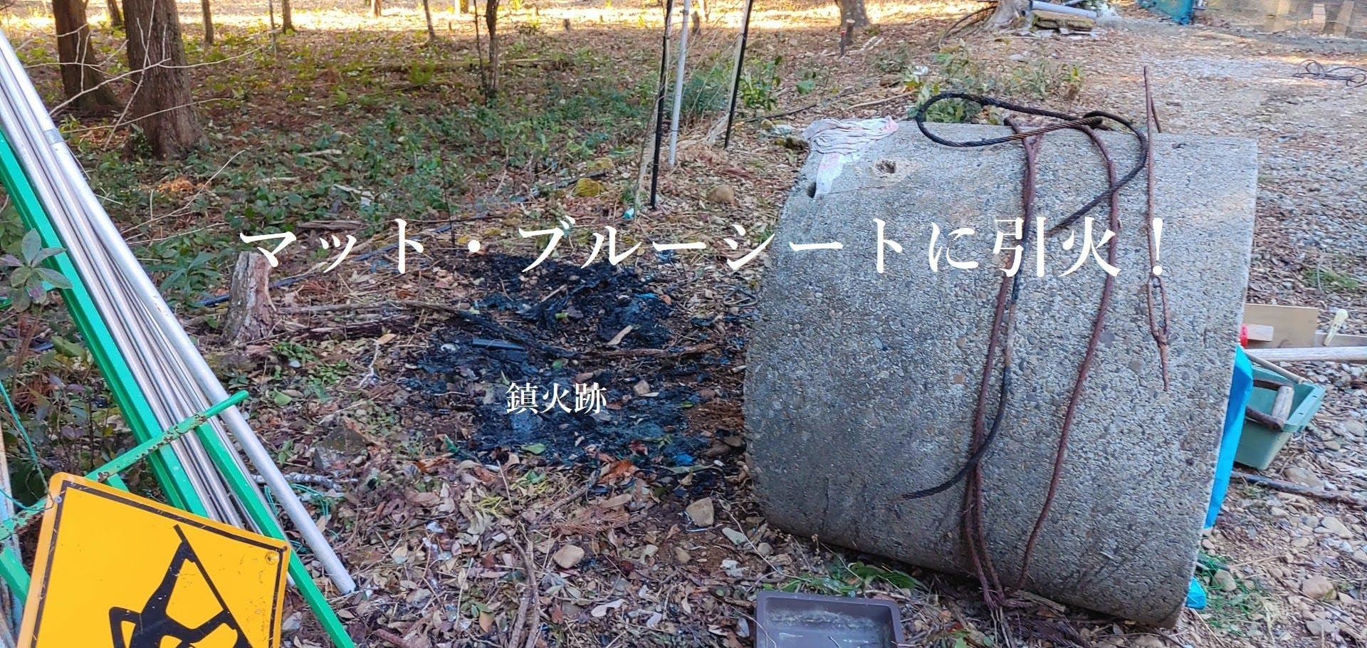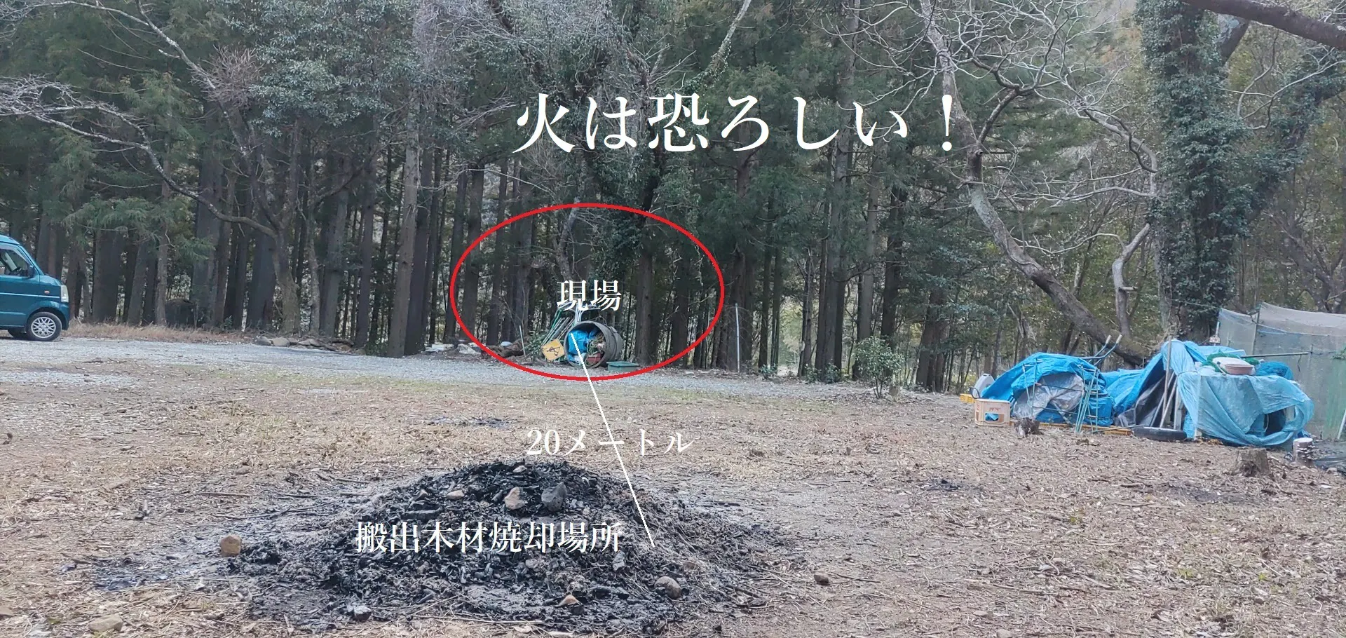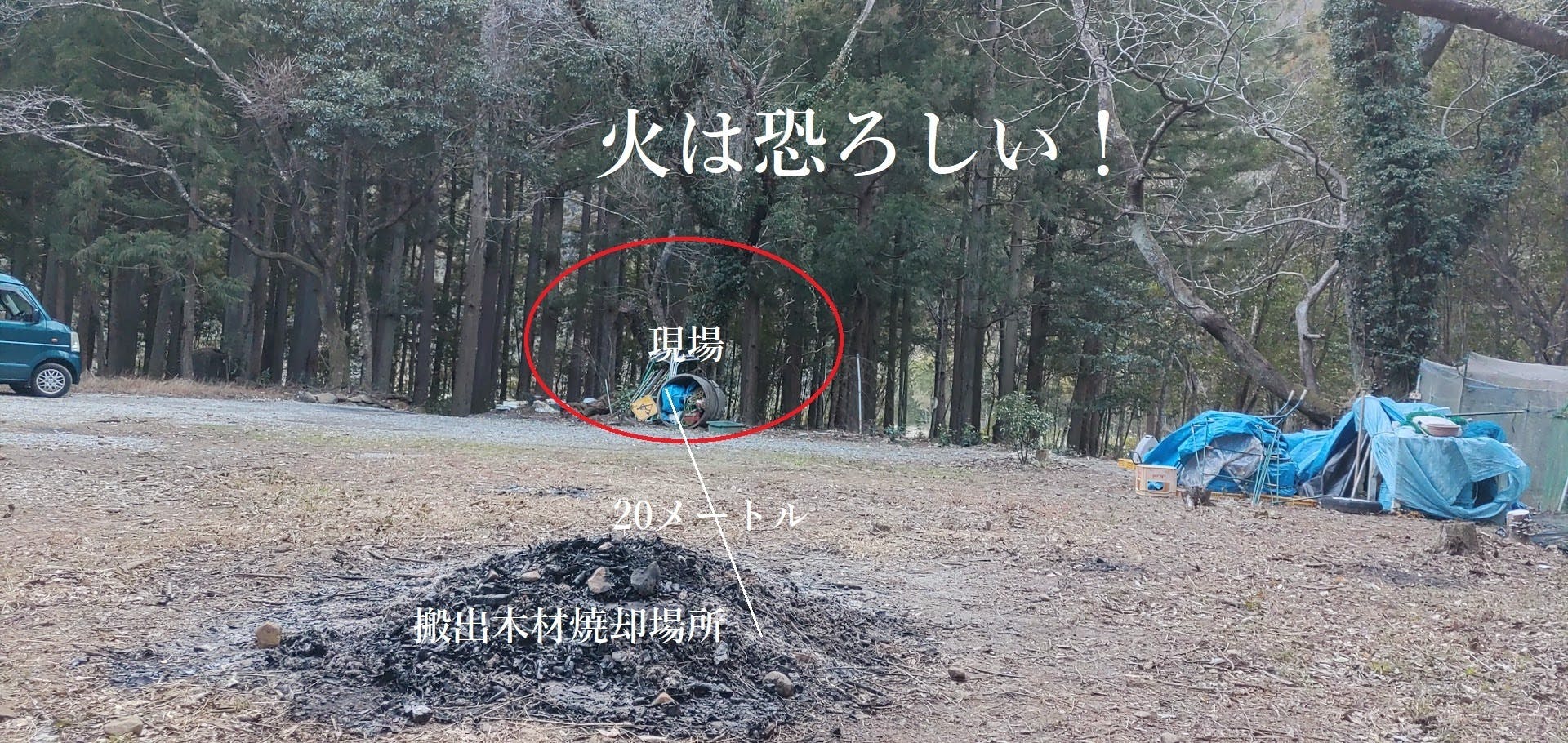 焼却場所から20m ほど離れた私の愛車の向こう側土管付近が!!!