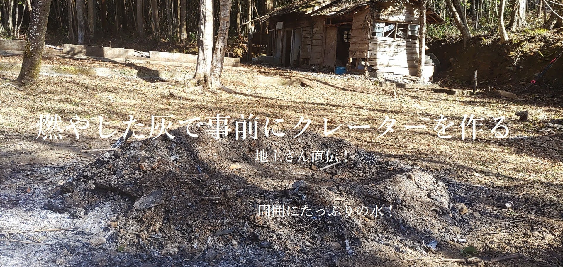 灰の山にくぼみを作り周囲に十分な水を散布仕事が終わるたびに水で消火して、