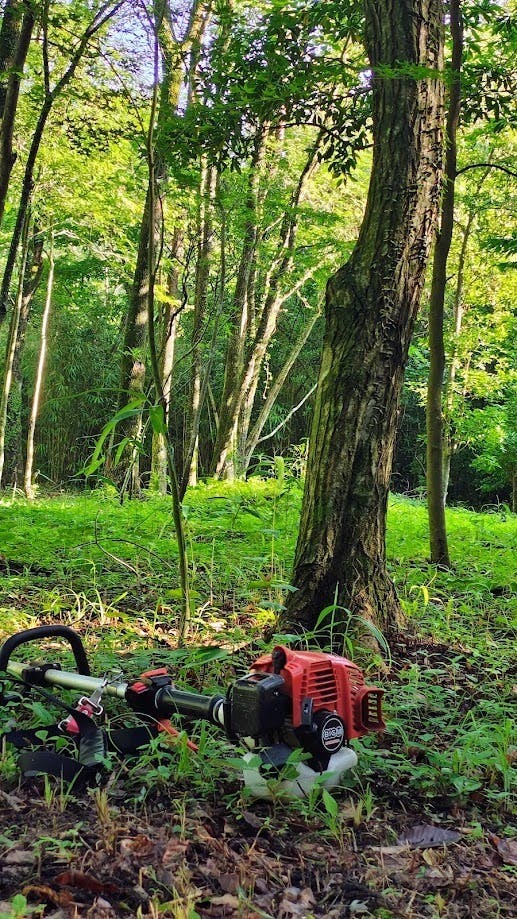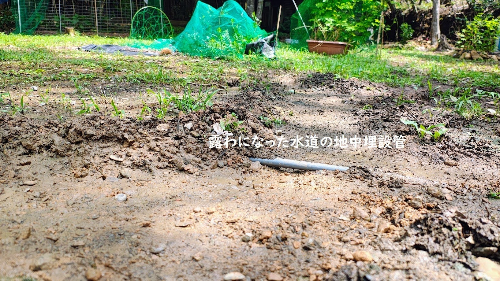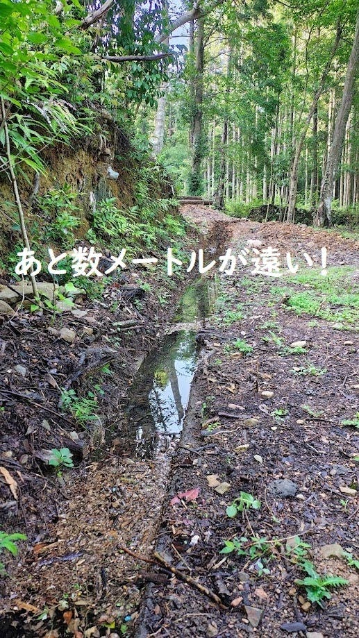 雨 雨 雨が続く中、開拓地ウラ山から流れ込む水