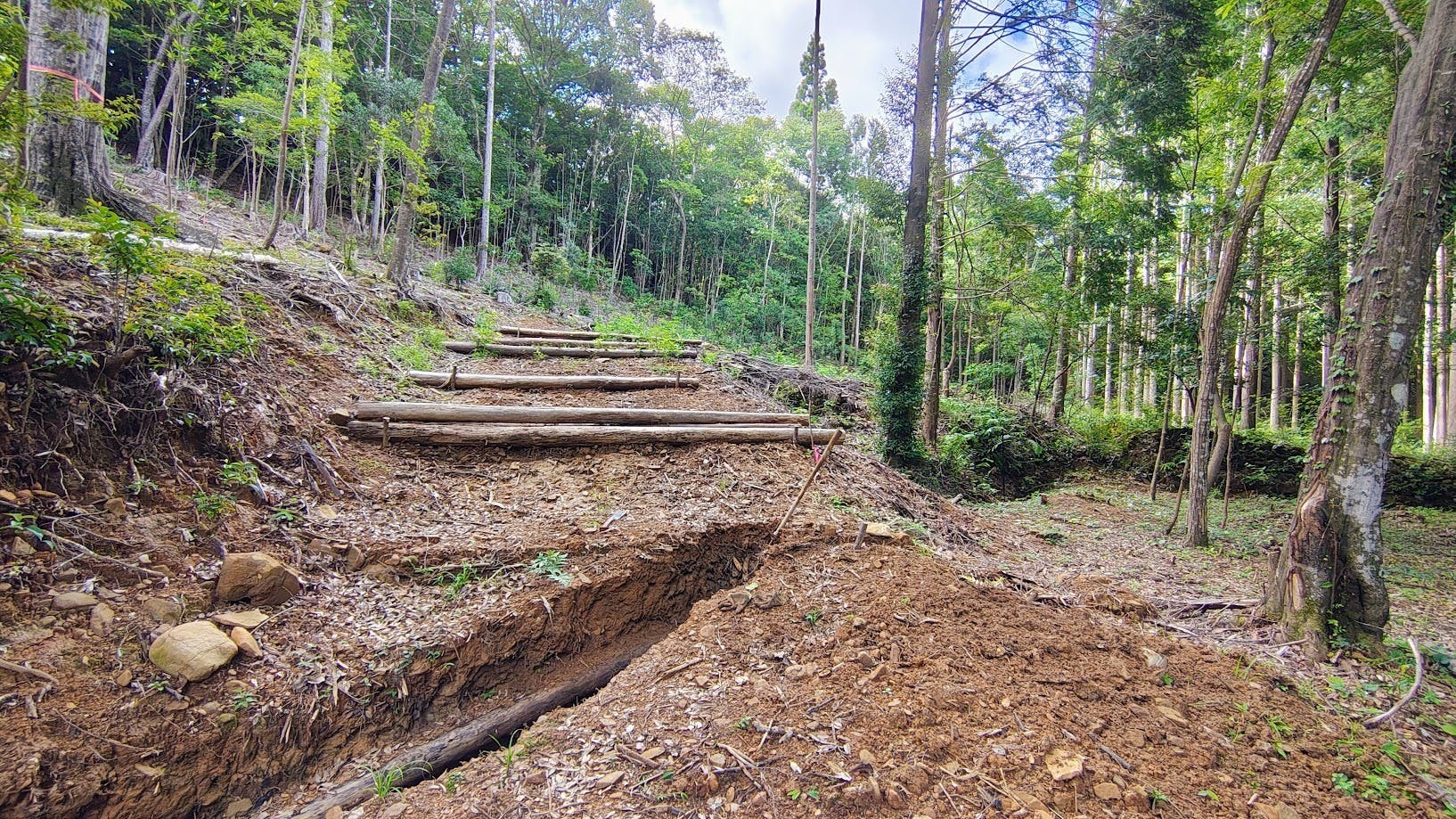 細くて深い足場のため安定せず、なかなか進まない・・・