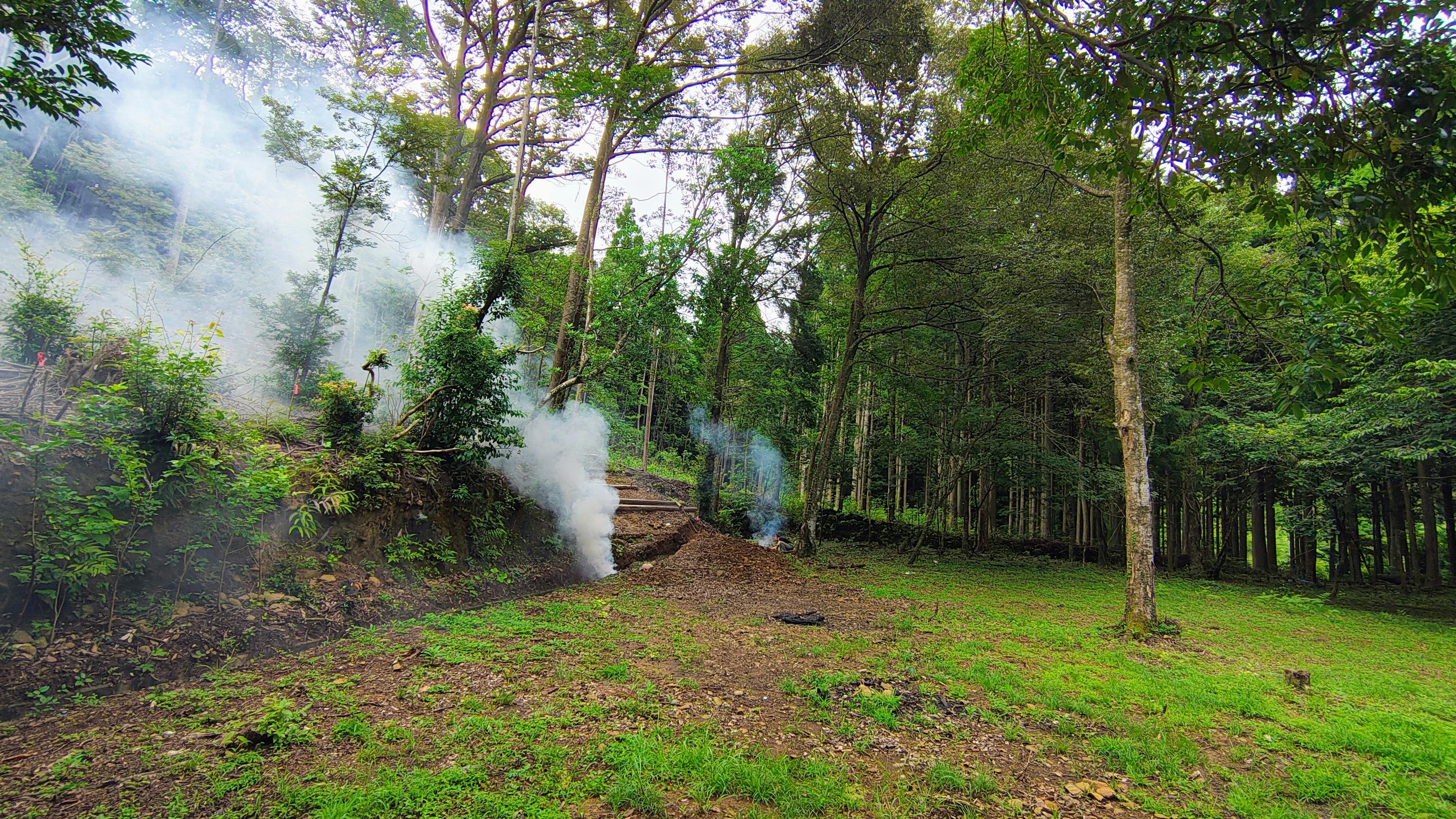 今度は排水溝が煙突になって、猛烈な煙~!!