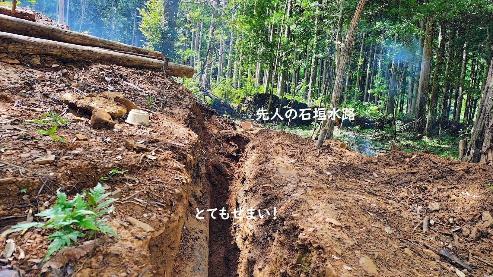 平行して横たわる丸太が邪魔をして、幅がとてもせまく、