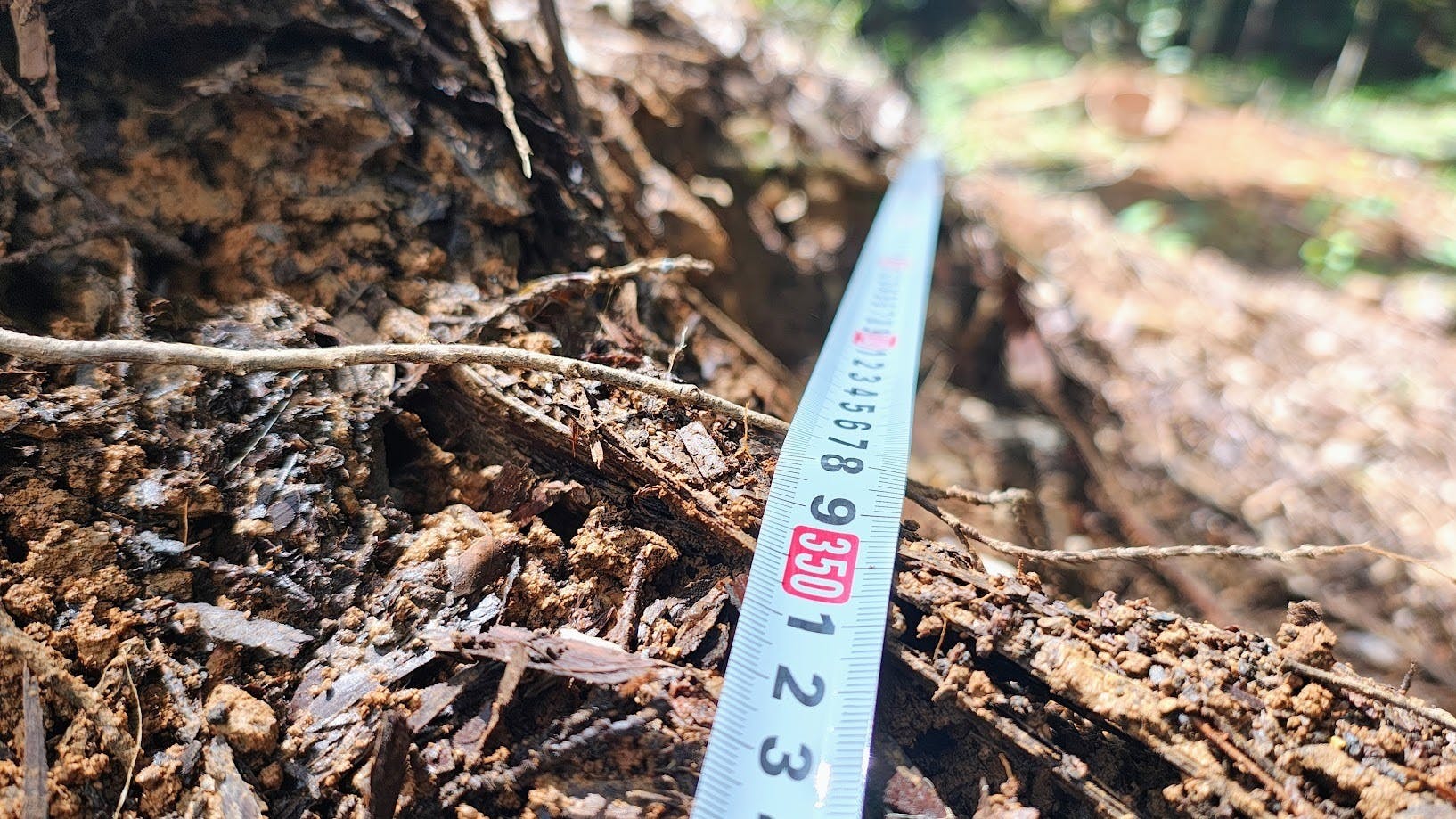 作業道の約150㎝下に通っている排水溝の土を掻き出す作業