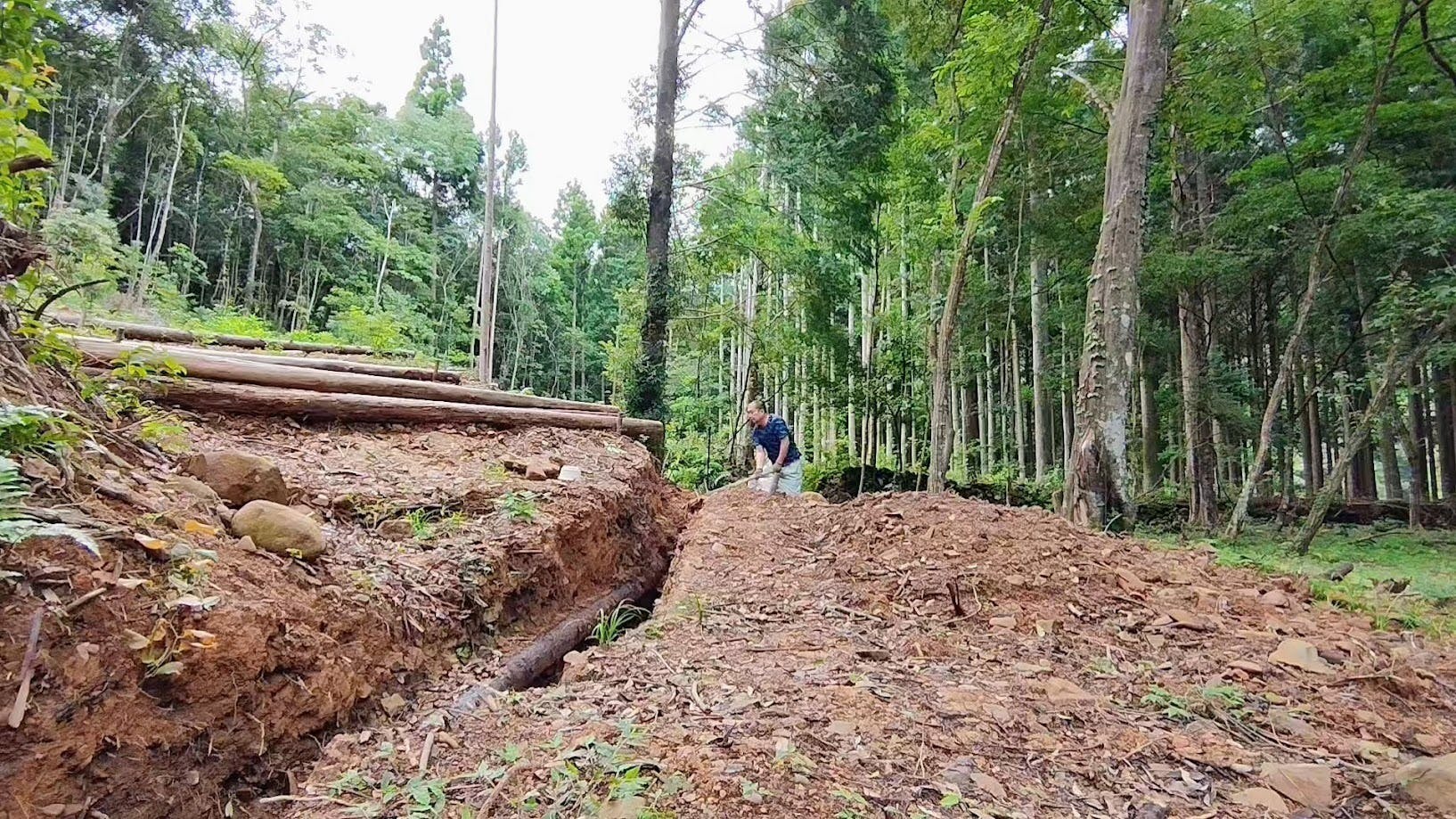 下りに入ってから、切り株や丸太が行く手を遮ってます。
