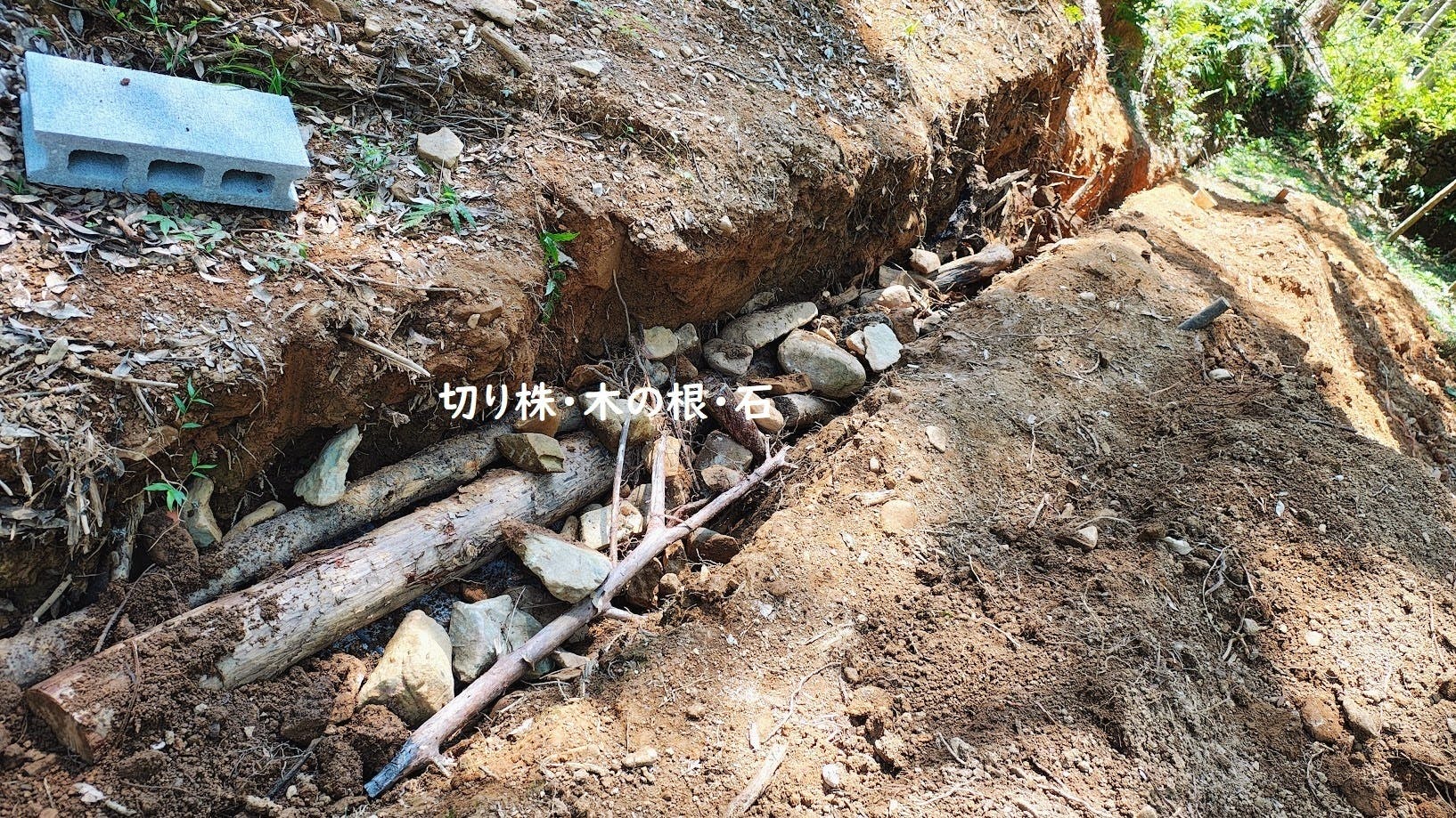あれだけ苦労して除去した切り株・木の根・石を全て戻します。
