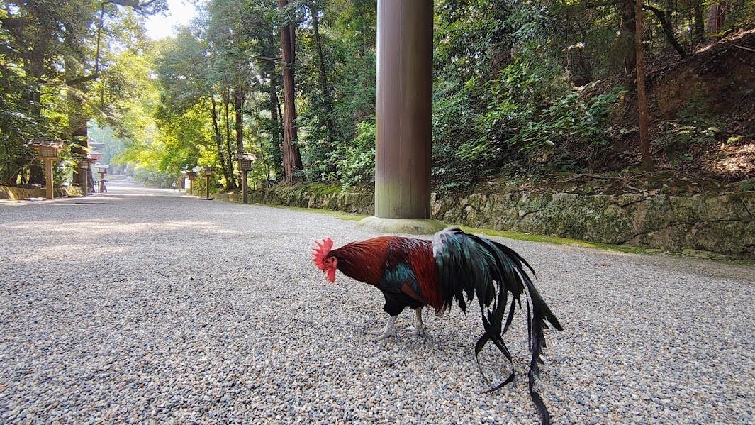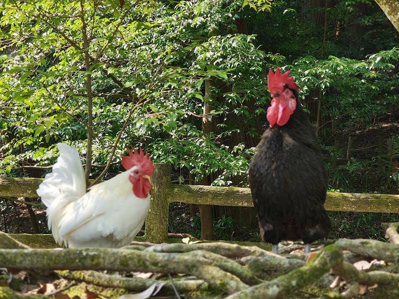鳥居をくぐるや否や、鶏さんがお出迎えしてくれました!