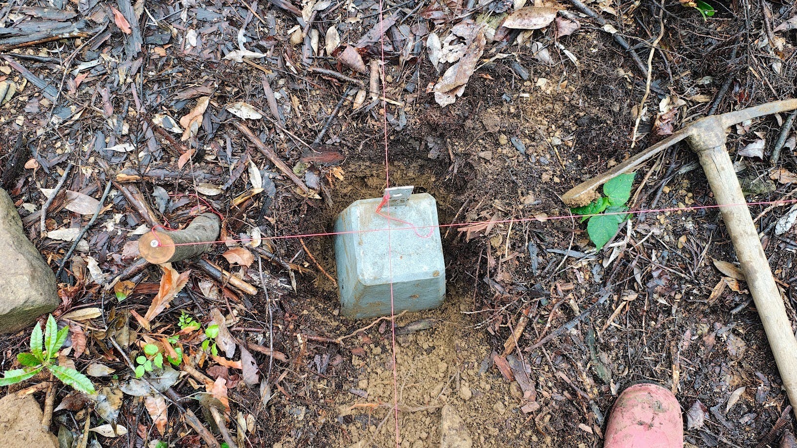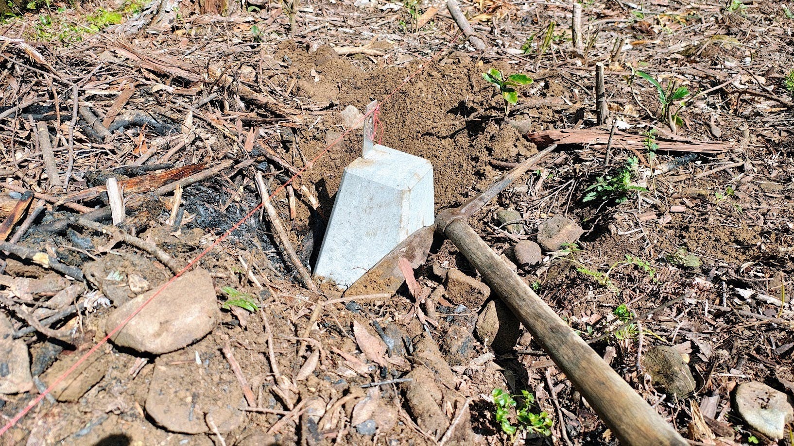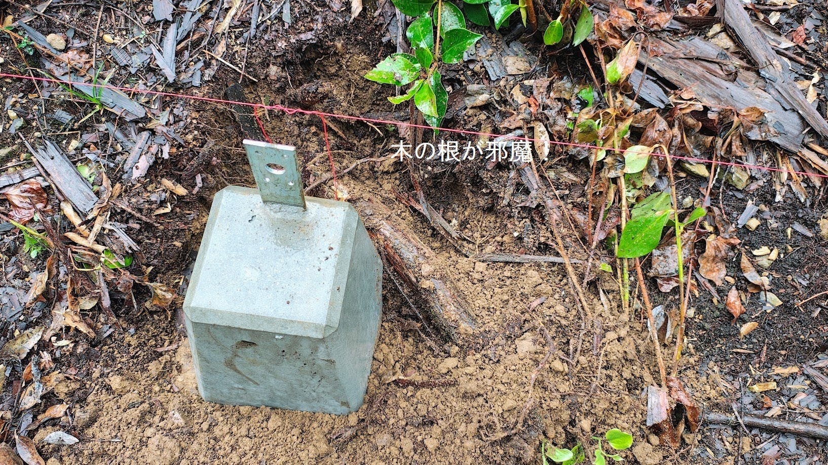 クロスポイントに穴を掘って沓石を設置しております!