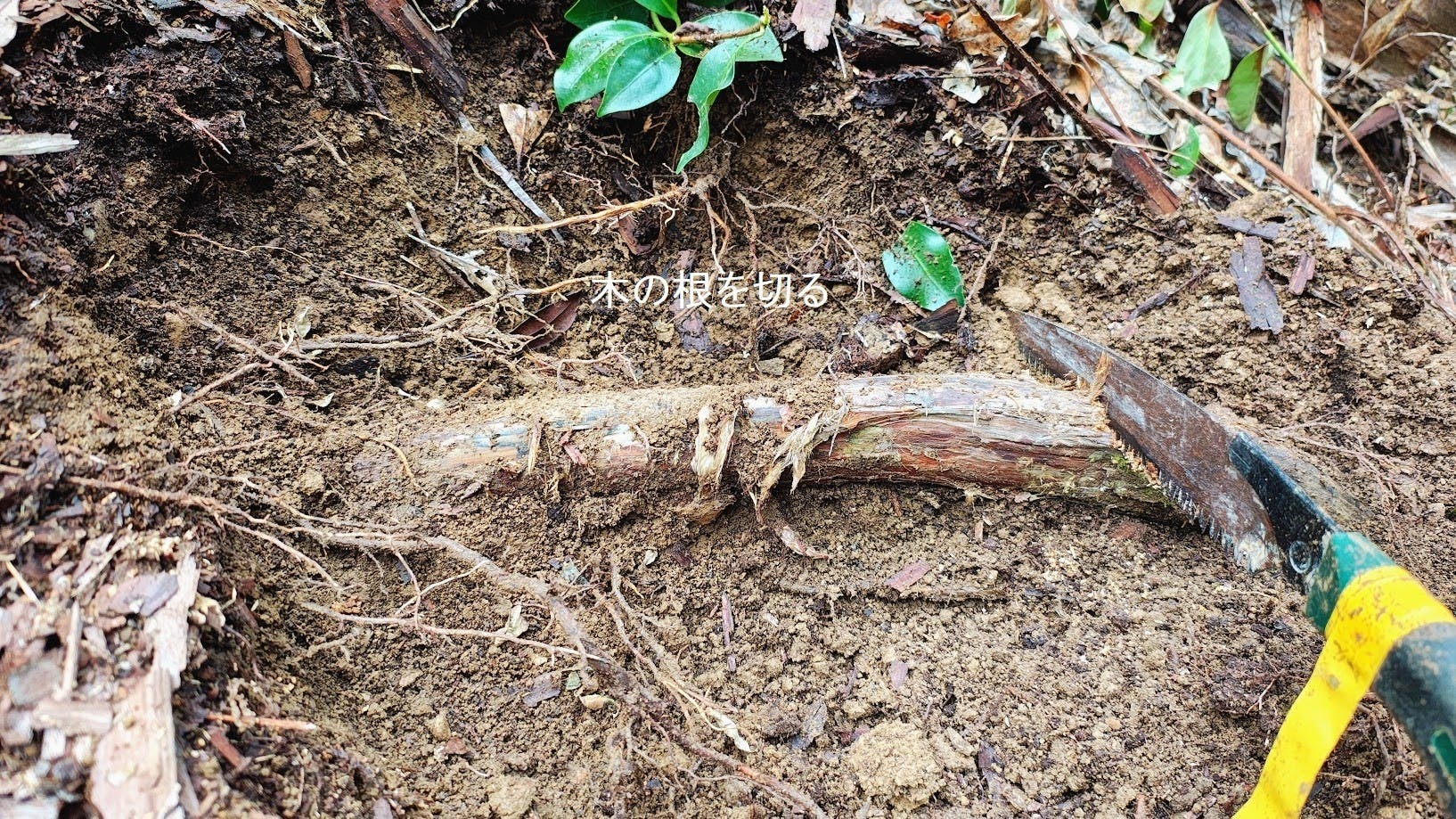 ひたすら穴を掘り、そしてひたすら木の根を切っていきます。