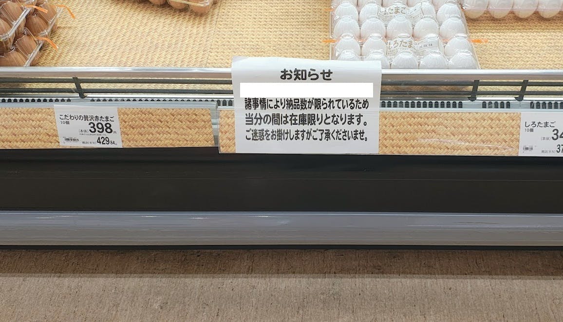 卵のコーナーの陳列棚の、卵の数が異常に少ない!