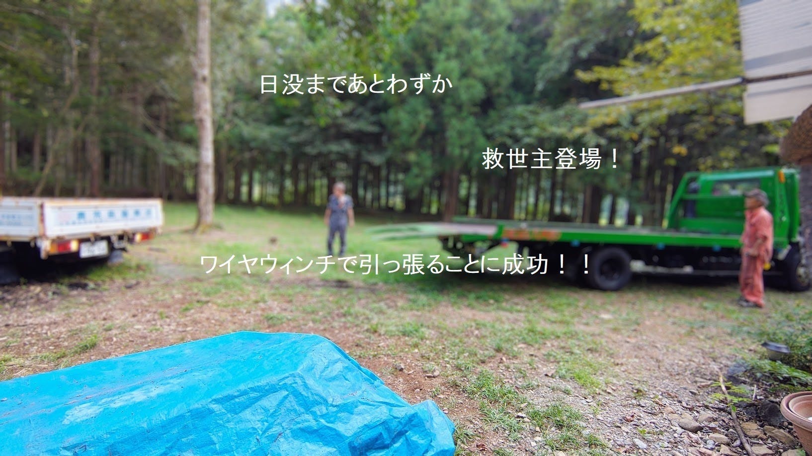ワイヤウィンチを使って、引っ張り、脱出に成功!!!