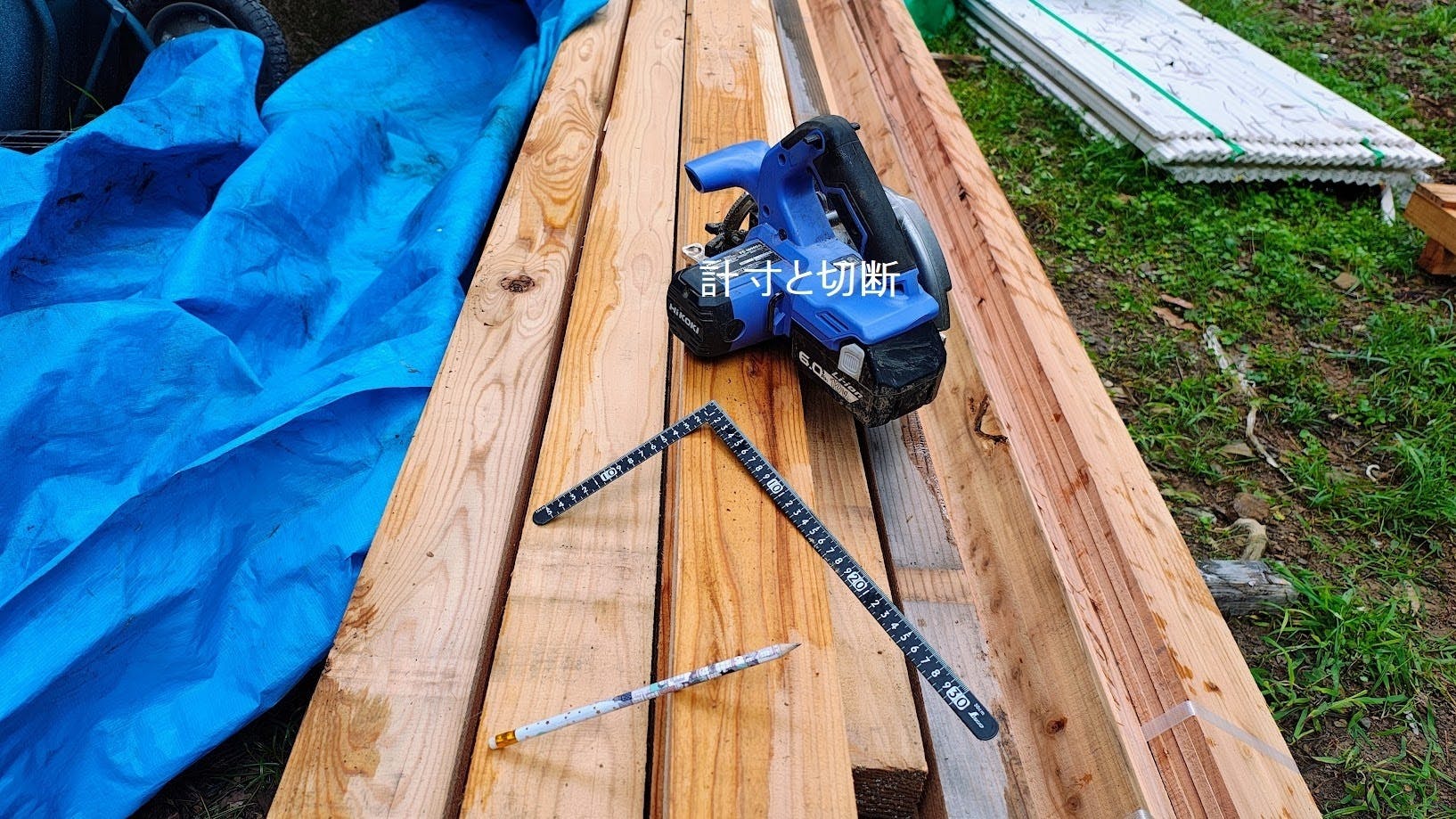 1.5×3寸角の材を設計した長さどおりに切っていきながら、