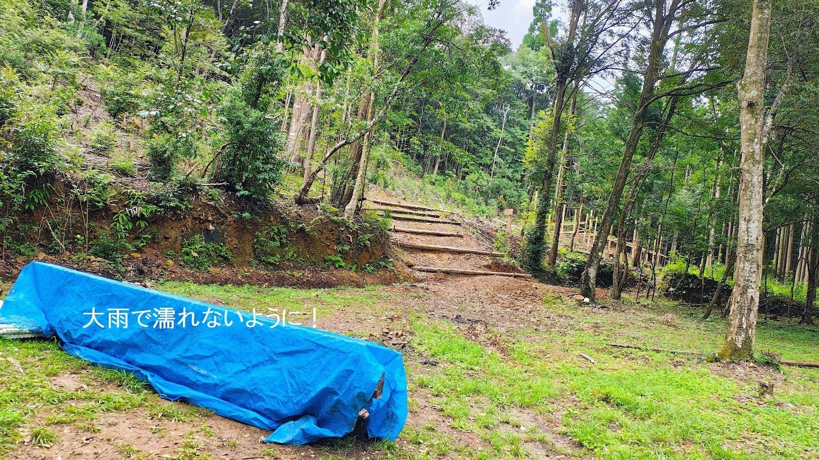 ブルーシートをかけて!! 風で飛ばされないように!!!