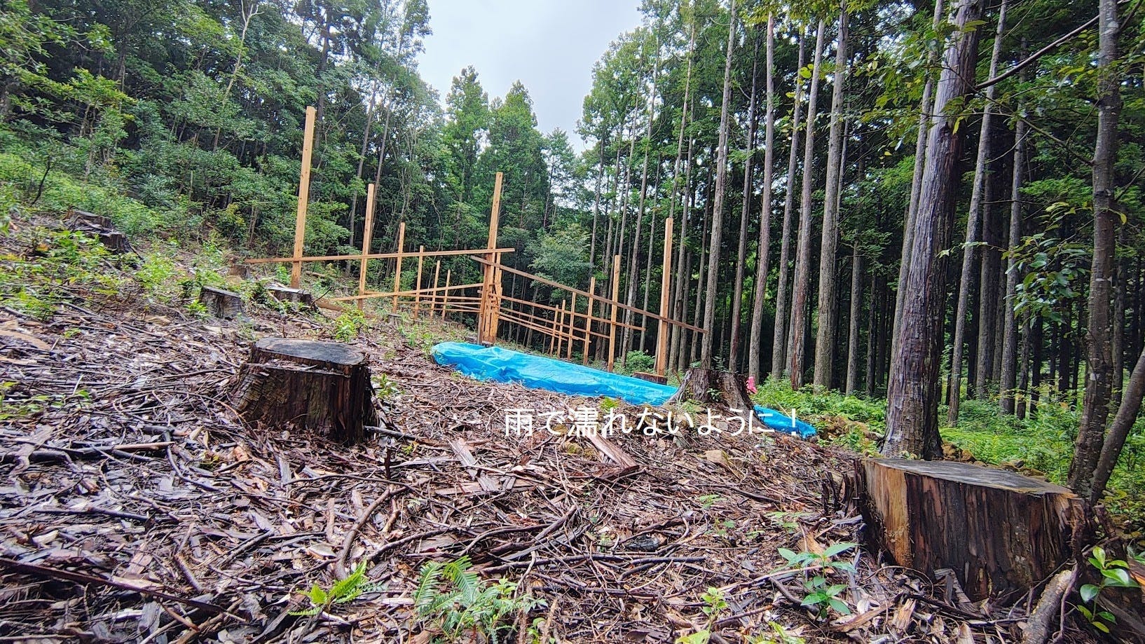 ブルーシートを被せ終わった瞬間 猛烈な雨~!!!!!