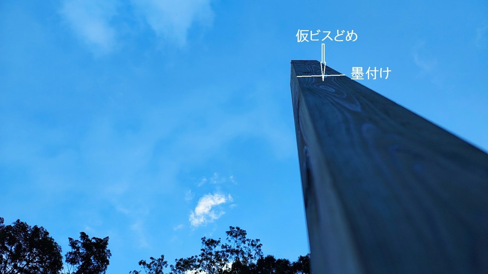 持ち上げる棟木にあらかじめすべてビスを半分うっておく。