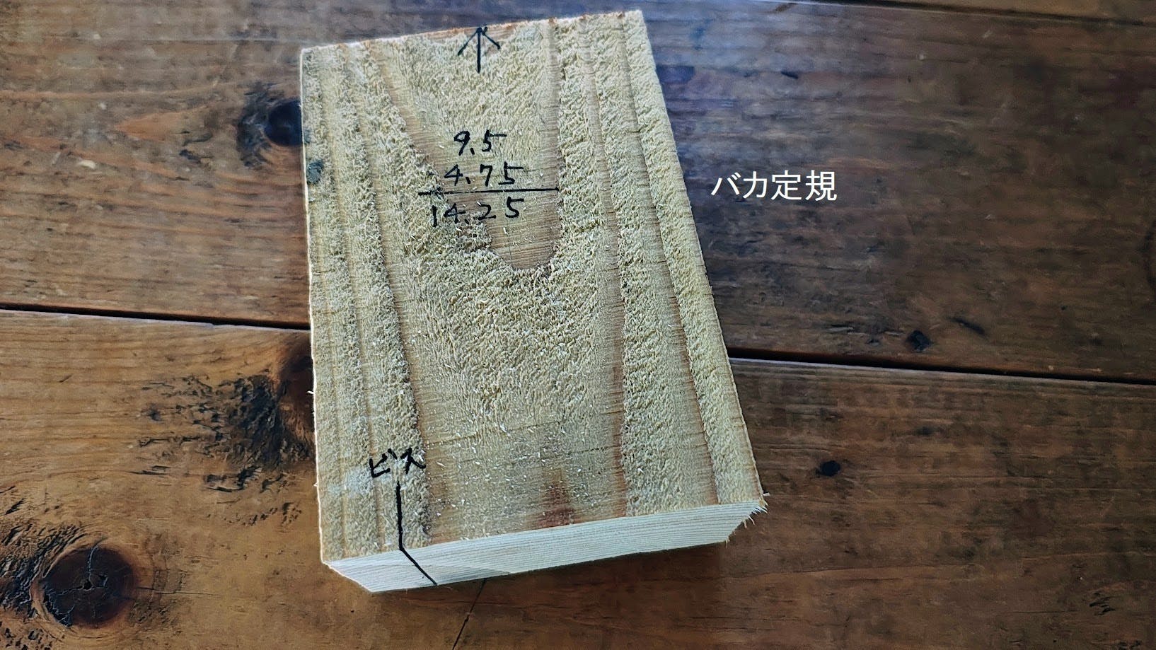 棟木の幅9.5㎝プラス垂木の幅4.75㎝=14.75㎝の位置