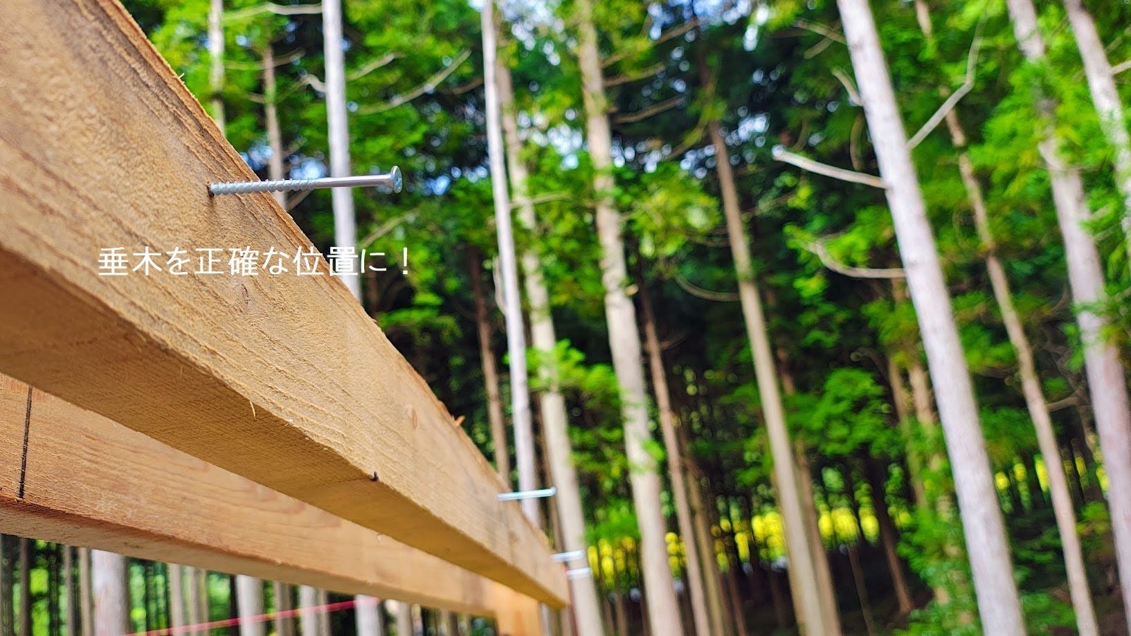 仮ビスを打ち、水糸を張っていくことにしました。