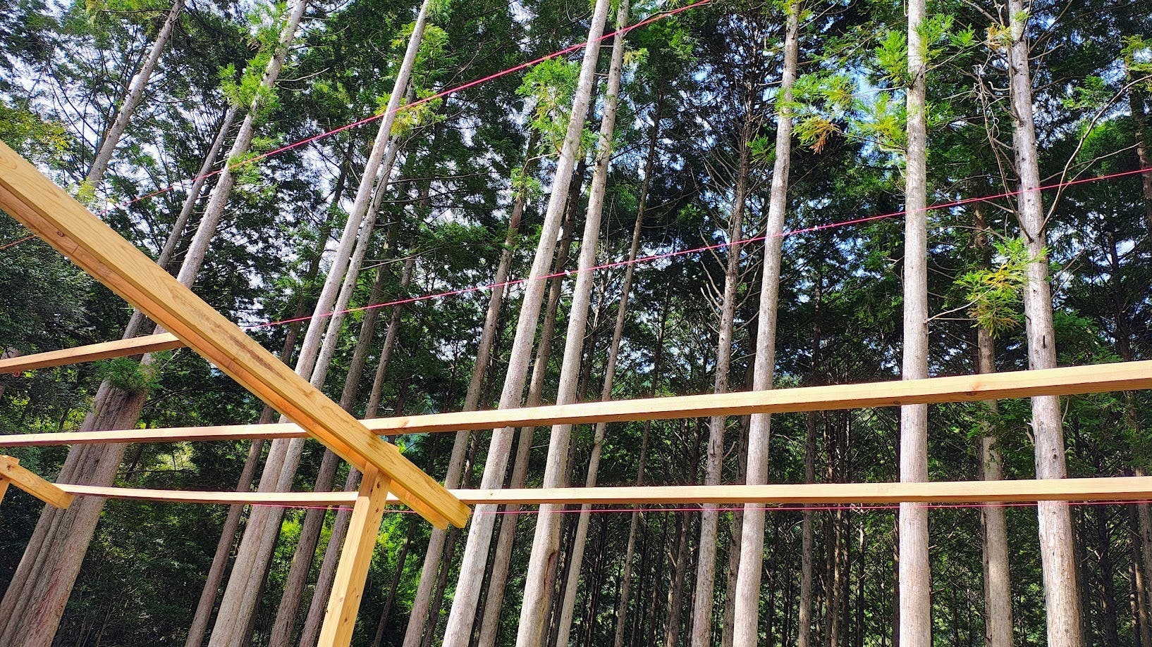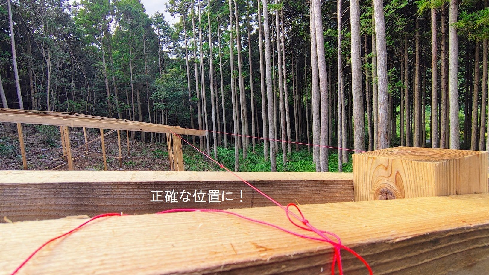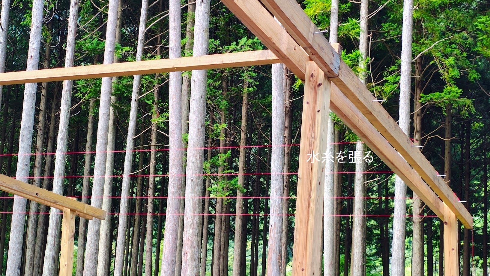仮ビスを打った後、それぞれの位置に水糸を張り