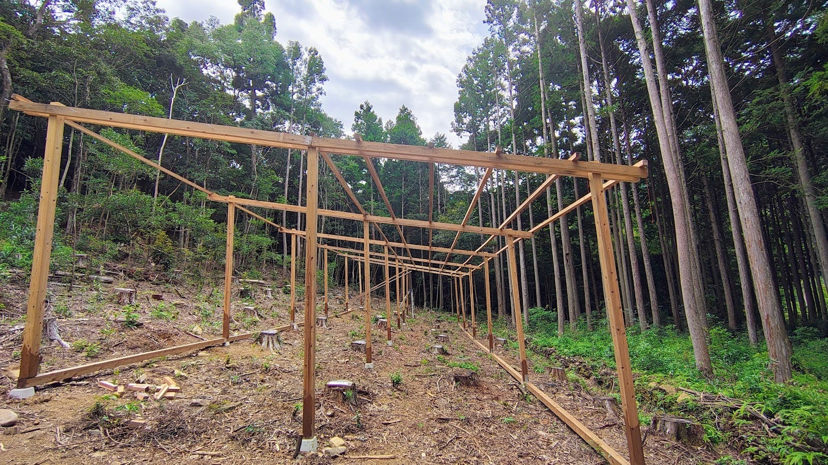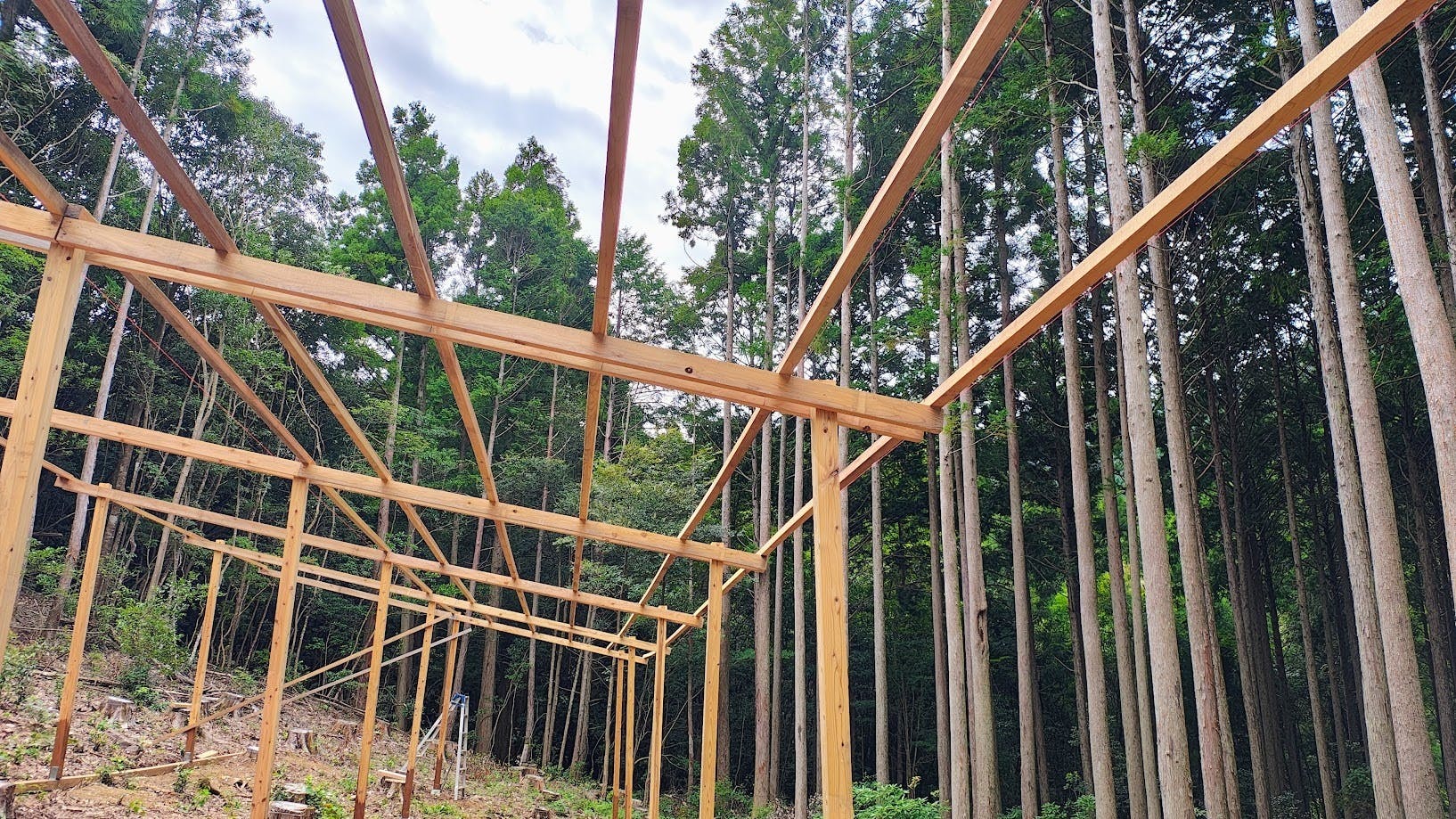 昨日は、屋根を乗せるための垂木の設置作業